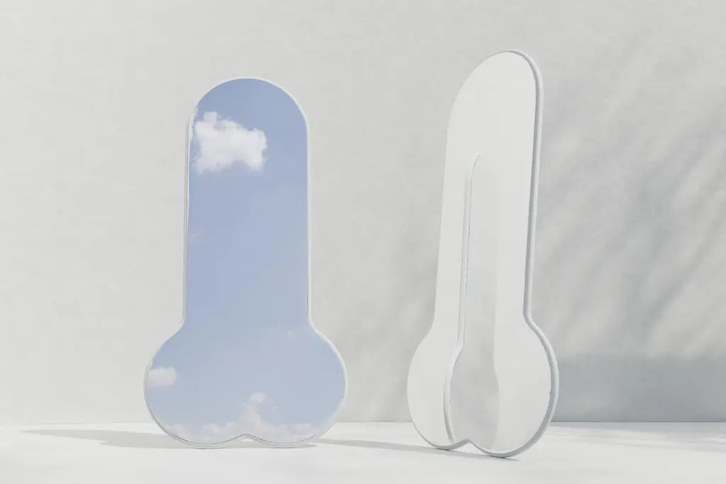 Contemporary Mirror 'Lovedick 180' by OitoproductsDimensions:W 90 cm x H 180 cm x D 4 cm W 35.4 in x H 71 in x D 1.3 inMaterials: Painted ecological water paint MDF, silver glass mirror, special rubber feet.AboutYes, you understood correctly!This mirror is called LOVEDICK, and it is their challenge to change all conservative approaches in design. They want people to be more courageous!Oito team and Ivan Voitovych follow the idea of creating only emotional products. You know, it's like in childhood: they should become more free and open, bold and bright.By buying this mirror, you immediately differ from everyone.Be the first brave daredevil!About OitoproductsOitoproducts is a young Ukrainian brand from Kiev. They want to change furniture trends and add more fashion and value to the product. Their mission is to make furniture part of thinking fashion, not just a daily item. They spend a lot of time on visual and technical beauty. Each product of the line is complex. They value manual labor and try to make every detail meaningful and quality.They support local manufacturers and create new items together. At the moment, Ukraine is not a big industrial giant, but there is a highlight. All our items are the result of manual labor, and it is always warmer and more emotional.