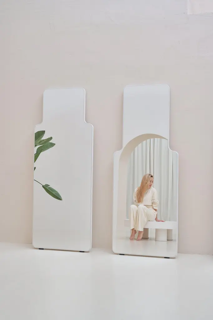 Contemporary Mirror 'Loveself 02' by OitoproductsColor RAL 3015Dimensions:W 70 cm x H 180 cm x D 4 cmW 27.5 in x H 71 in x D 1.3 inMaterials: Painted ecological water paint MDF, silver glass mirror, special rubber feet.AboutLOVESELF is a collection of mirrors created by our team of designers oito design.The mission of the collection is to call everyone to love themselves!Each of us is an individual, we are all different.Mirrors symbolize their personality!About OitoproductsOitoproducts is a young Ukrainian brand from Kiev. They want to change furniture trends and add more fashion and value to the product. Their mission is to make furniture part of thinking fashion, not just a daily item. They spend a lot of time on visual and technical beauty. Each product of the line is complex. They value manual labor and try to make every detail meaningful and quality.They support local manufacturers and create new items together. At the moment, Ukraine is not a big industrial giant, but there is a highlight. All our items are the result of manual labor, and it is always warmer and more emotional.