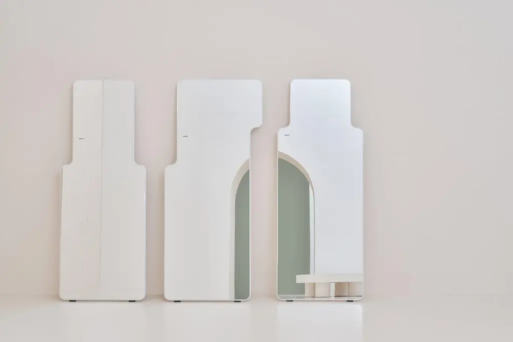 Contemporary mirror 'Loveself 03' by OitoproductsDimensions:W 70 cm x H 180 cm x D 4 cmW 27.5 in x H 71 in x D 1.3 inMaterials: Painted ecological water paint MDF, silver glass mirror, special rubber feet.AboutLOVESELF is a collection of mirrors created by our team of designers oito design.The mission of the collection is to call everyone to love themselves!Each of us is an individual, we are all different.Mirrors symbolize their personality!About OitoproductsOitoproducts is a young Ukrainian brand from Kiev. They want to change furniture trends and add more fashion and value to the product. Their mission is to make furniture part of thinking fashion, not just a daily item. They spend a lot of time on visual and technical beauty. Each product of the line is complex. They value manual labor and try to make every detail meaningful and quality.They support local manufacturers and create new items together. At the moment, Ukraine is not a big industrial giant, but there is a highlight. All our items are the result of manual labor, and it is always warmer and more emotional.