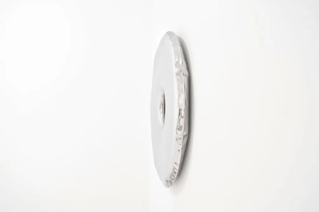 "Rondo" contemporary mirror by ZietaOriginal Zieta mirror, delivered with certificate. Stainless steelMeasures: 150 cm diameter, 6 cm depthZieta is best known for his collection of stools “Plopp” made through the technologist FIDU. With the same principle Zieta Prozessdesign conceived mirror collections made of stainless steel called “Tafla”, “Rondo” and “Rondel”. Two laser-cut metal sheets are first welded together before air is injected between them until they separate from each other forming a three-dimensional object.Since he was a child, Oskar Zięta has been a huge fan of ultralightness and mobility. Today he is the creator of one of the lightest chairs on Earth, and a constant traveller between the universes of art and engineering. Throughout his life and career, Oskar has strongly believed in the power of determination and consistent perseverance in achieving goals. Success is a continuous search for your better self and better solutions—constant improvement and humility in the face of setbacks.