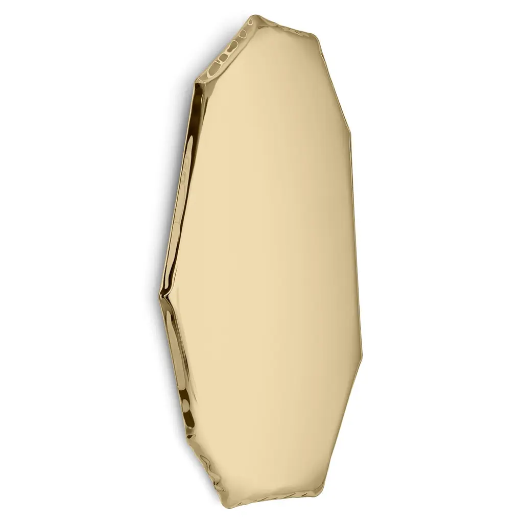 "Tafla C3" contemporary mirror by ZietaOriginal Zieta mirror, delivered with certificate. Collection: AURUM (2021)Material: Polished stainless steelFinish: Light goldSize: 124 x 67 x 6 cm.The 'AURUM' collection presents Tafla C mirrors in warmer colours, such as light gold, classic gold and rose gold. Tafla C is available in many sizes: C1, C2, C3, C4, C4.5, C5 and C6.Zieta is best known for his collection of stools “Plopp” made through the technologist Fidu. With the same principle Zieta Studio conceived mirror collections made of stainless steel called “Tafla”, “Rondo” and “Oko”. Two laser-cut metal sheets are first welded together before air is injected between them until they separate from each other forming a three-dimensional object.