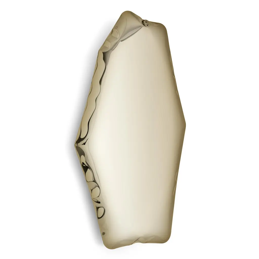 "Tafla C4.5" contemporary mirror by ZietaOriginal Zieta mirror, delivered with certificate. Collection: AURUM (2021)Material: Polished stainless steelFinish: Classic goldSize: 83 x 47 x 6 cm.The 'AURUM' collection presents Tafla C mirrors in warmer colours, such as light gold, classic gold and rose gold. Tafla C is available in many sizes: C1, C2, C3, C4, C4.5, C5 and C6.Zieta is best known for his collection of stools “Plopp” made through the technologist Fidu. With the same principle Zieta Studio conceived mirror collections made of stainless steel called “Tafla”, “Rondo” and “Oko”. Two laser-cut metal sheets are first welded together before air is injected between them until they separate from each other forming a three-dimensional object.