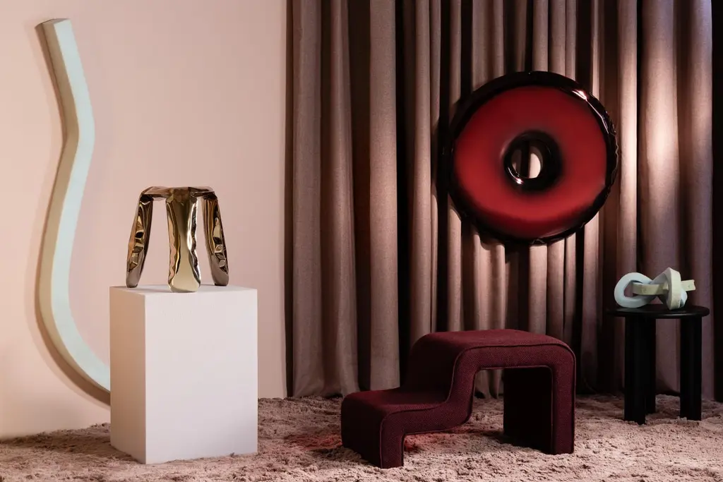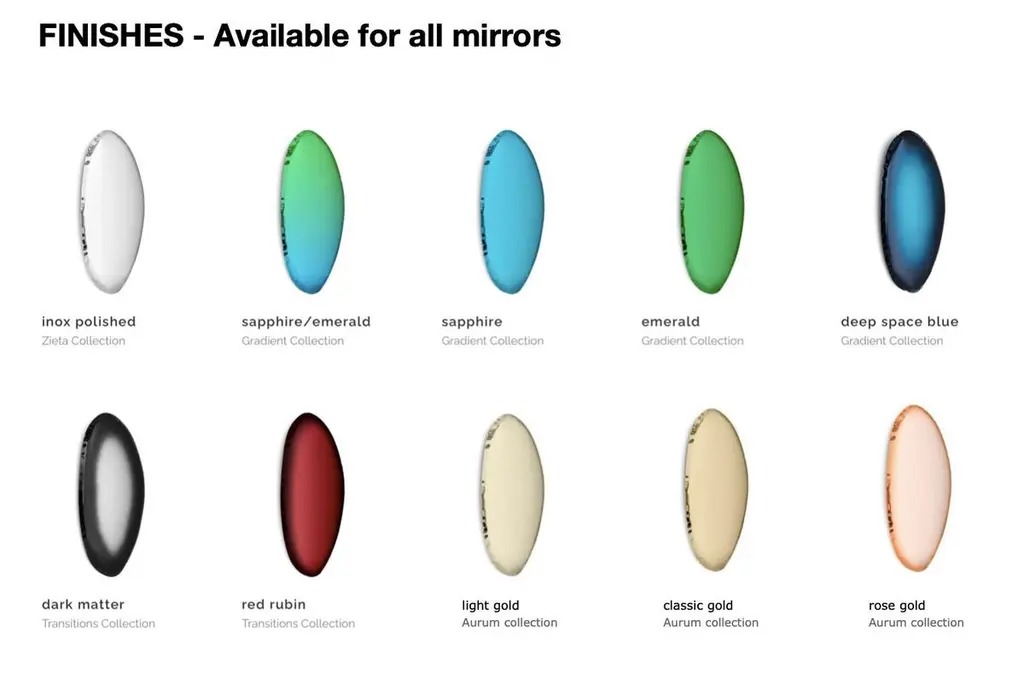 "Tafla C5" contemporary mirror by ZietaOriginal Zieta mirror, delivered with certificate. Collection: TRANSITIONS (2021)Material: Polished stainless steelFinish: Rubin RedSize: 55 x 40 x 6 cm.The 'TRANSITIONS' collection presents Tafla C mirrors in darker colors, such as Rubin red and Dark matter. This collection is about change and is inspired by the elements that constitute the universe. Tafla C is available in many sizes: C1, C2, C3, C4, C4.5, C5 and C6.Zieta is best known for his collection of stools “Plopp” made through the technologist Fidu. With the same principle Zieta Studio conceived mirror collections made of stainless steel called “Tafla”, “Rondo” and “Oko”. Two laser-cut metal sheets are first welded together before air is injected between them until they separate from each other forming a three-dimensional object.TAFLA C is an avant-garde interpretation of a drop of water. Objects from the C series have expressive, characteristic contours that provoke the senses and reflections of light. The irregular deformation at the edges is unique because it is caused by the free deformation of the metal under air pressure. These are stories about reflections, and stories of reflections in individual objects and constellations.
