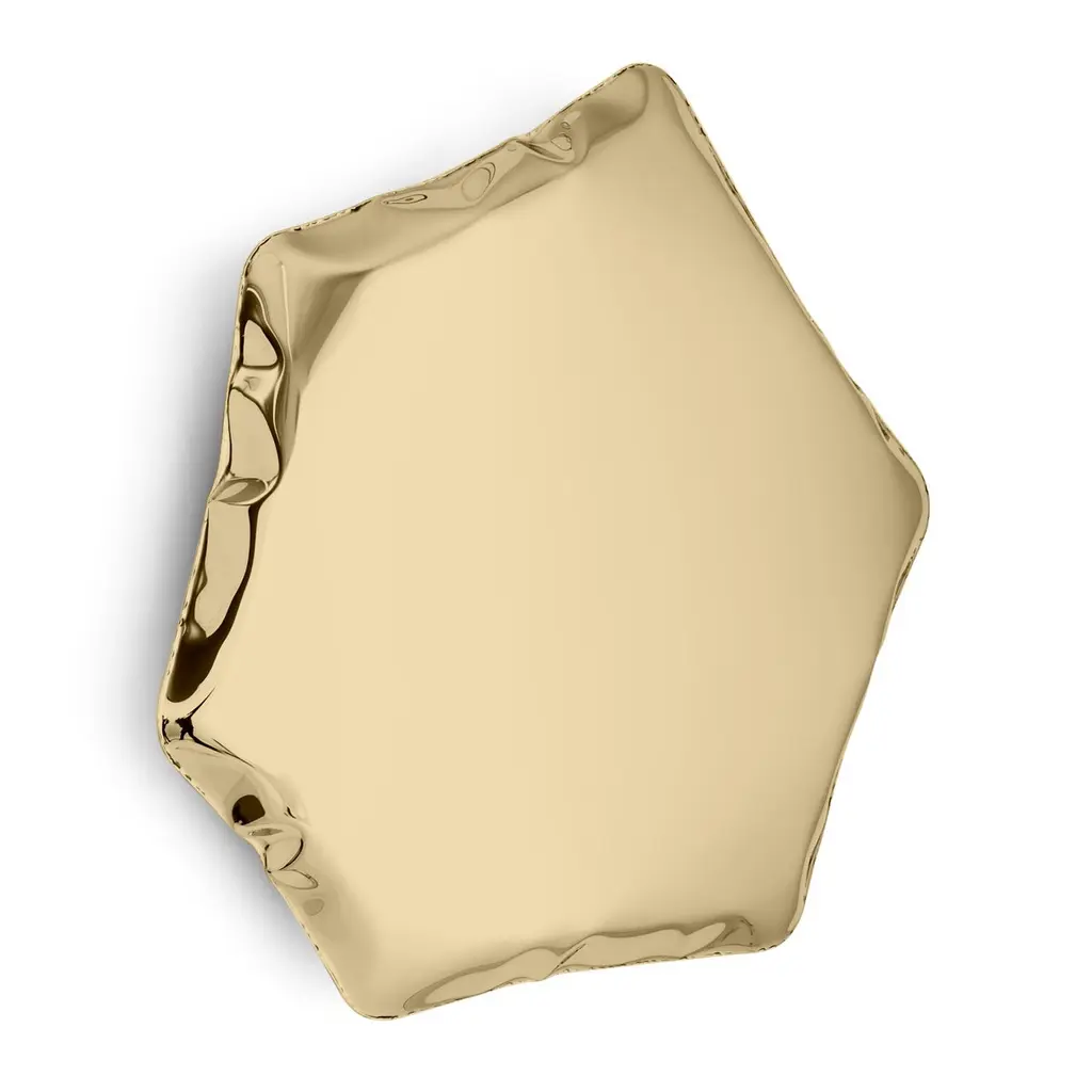 "Tafla C6" contemporary mirror by ZietaOriginal Zieta mirror, delivered with certificate. Collection: Aurum (2021)Material: Polished stainless steelFinish: Classic goldSize: 55 x 50 x 6 cm.The 'Aurum' collection presents Tafla C mirrors in warmer colours, such as light gold, classic gold and rose gold. Tafla C is available in many sizes: C1, C2, C3, C4, C4.5, C5 and C6.Zieta is best known for his collection of stools “Plopp” made through the technologist Fidu. With the same principle Zieta Studio conceived mirror collections made of stainless steel called “Tafla”, “Rondo” and “Oko”. Two laser-cut metal sheets are first welded together before air is injected between them until they separate from each other forming a three-dimensional object.