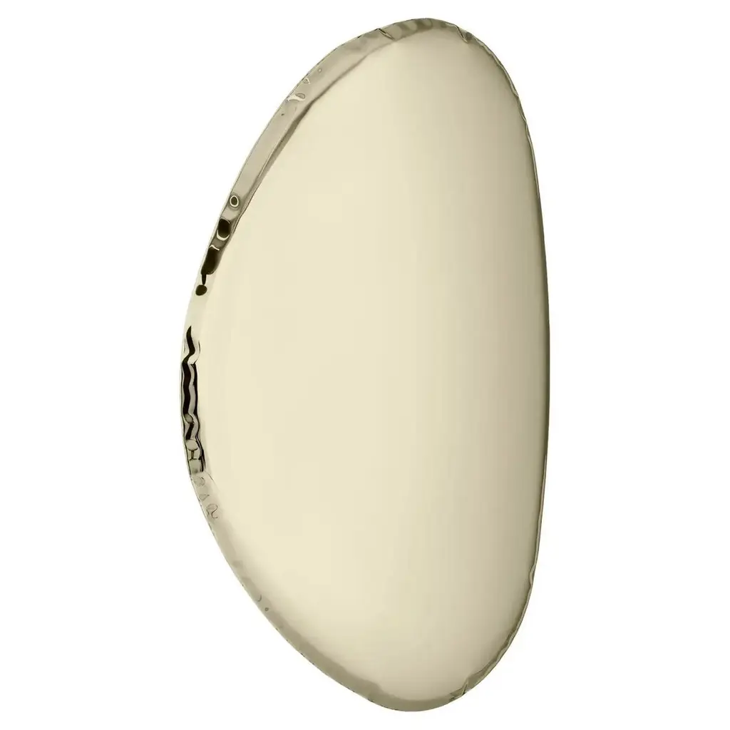 "Tafla O2" contemporary mirror by ZietaOriginal Zieta mirror, delivered with certificate. Collection: AURUM (2021)Material: Polished stainless steelFinish: Lacquer - Classic goldSize: 150cmZieta is best known for his collection of stools “Plopp” made through the technology FIDU. With the same principle Zieta Prozessdesign conceived mirror collections made of stainless steel called “Tafla”, “Rondo” and “Rondel”. Two laser-cut metal sheets are first welded together before air is injected between them until they separate from each other forming a three-dimensional object.The 'Tafla O' collection has a glossy steel finish inspired by drops of water. Its shape makes the mirror modern and contemporary. The 'AURUM' collection presents Tafla O mirrors in warmer colours, such as light gold, classic gold and rose gold.