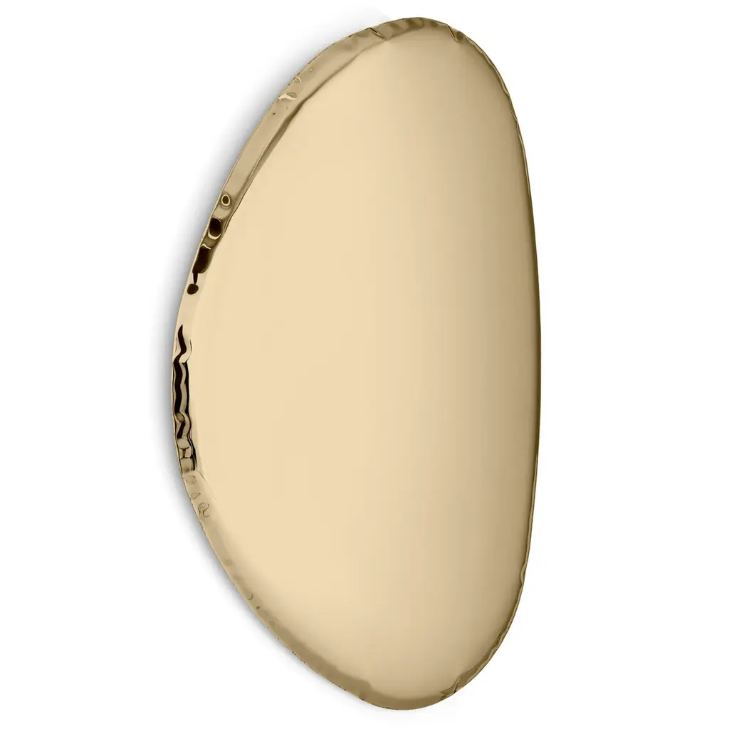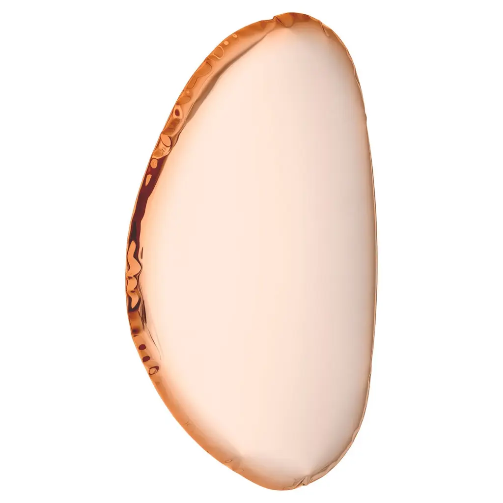 "Tafla O2" contemporary mirror by ZietaOriginal Zieta mirror, delivered with certificate. Collection: AURUM (2021)Material: Polished stainless steelFinish: Lacquer - Rose goldSize: 150cmZieta is best known for his collection of stools “Plopp” made through the technology FIDU. With the same principle Zieta Prozessdesign conceived mirror collections made of stainless steel called “Tafla”, “Rondo” and “Rondel”. Two laser-cut metal sheets are first welded together before air is injected between them until they separate from each other forming a three-dimensional object.The 'Tafla O' collection has a glossy steel finish inspired by drops of water. Its shape makes the mirror modern and contemporary. The 'AURUM' collection presents Tafla O mirrors in warmer colours, such as light gold, classic gold and rose gold.