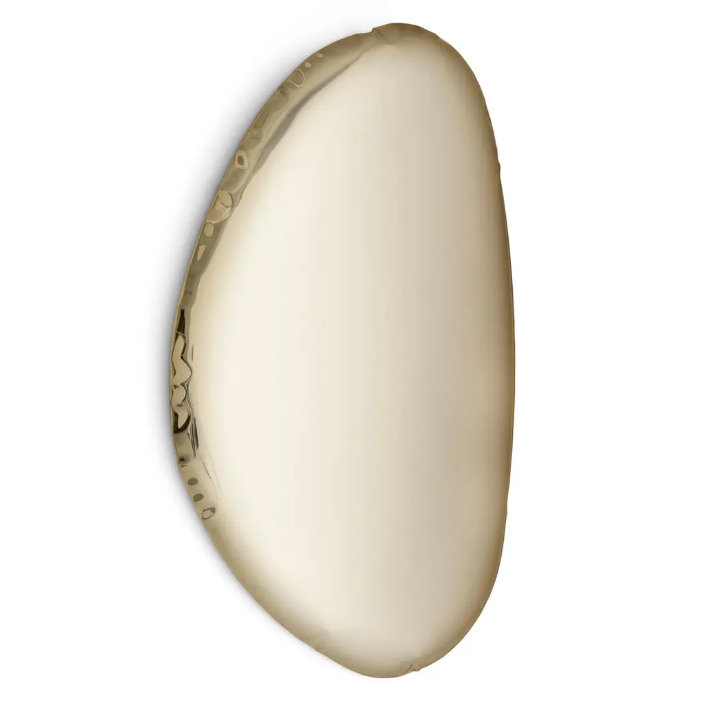 "Tafla O3" contemporary mirror by ZietaOriginal Zieta mirror, delivered with certificate. Collection: AURUM (2021)Material: Polished stainless steelFinish: Lacquer - Classic goldSize: 124cmZieta is best known for his collection of stools “Plopp” made through the technology FIDU. With the same principle Zieta Prozessdesign conceived mirror collections made of stainless steel called “Tafla”, “Rondo” and “Rondel”. Two laser-cut metal sheets are first welded together before air is injected between them until they separate from each other forming a three-dimensional object.The 'Tafla O' collection has a glossy steel finish inspired by drops of water. Its shape makes the mirror modern and contemporary. The 'AURUM' collection presents Tafla O mirrors in warmer colours, such as light gold, classic gold and rose gold.
