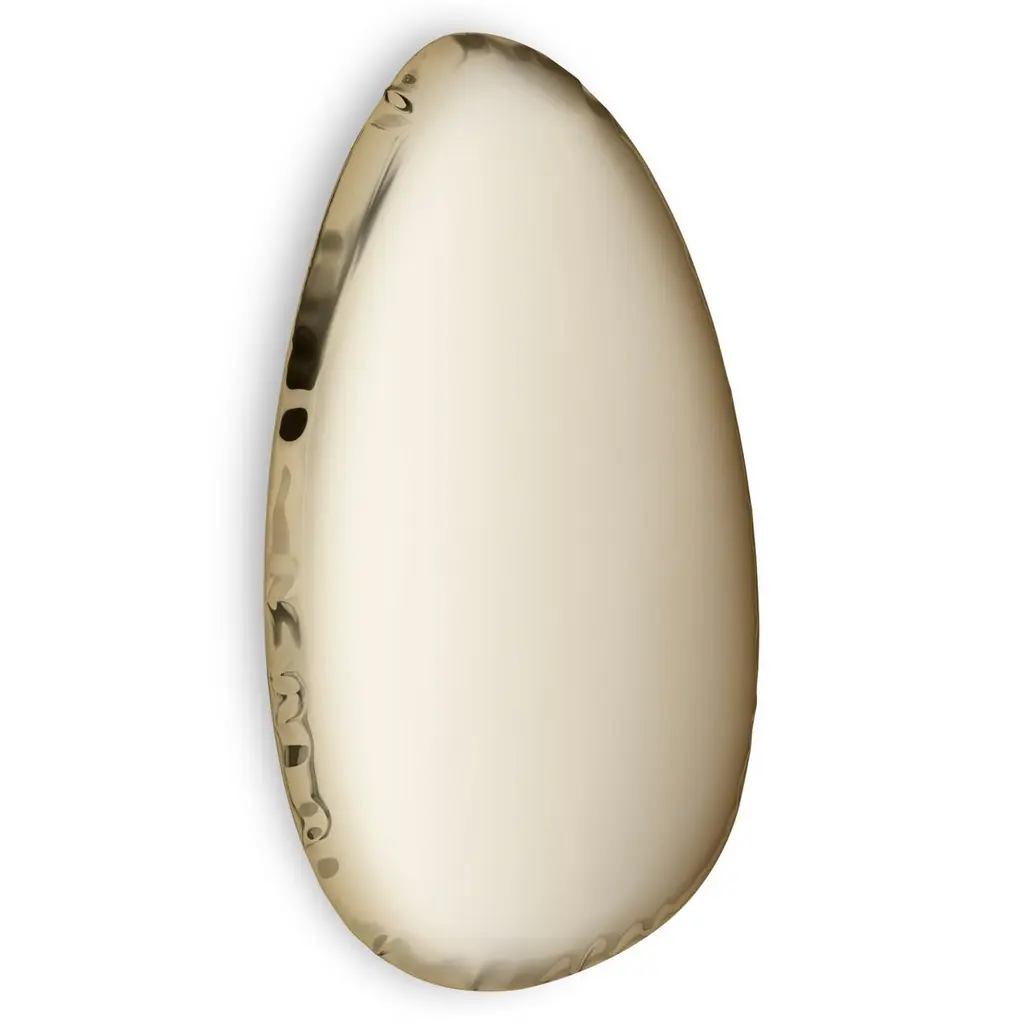 "Tafla O4.5" contemporary mirror by ZietaOriginal Zieta mirror, delivered with certificate. Collection: AURUM (2021)Material: Polished stainless steelFinish: Lacquer - Classic goldSize: 86 cmZieta is best known for his collection of stools “Plopp” made through the technology FIDU. With the same principle Zieta Prozessdesign conceived mirror collections made of stainless steel called “Tafla”, “Rondo” and “Rondel”. Two laser-cut metal sheets are first welded together before air is injected between them until they separate from each other forming a three-dimensional object.The 'Tafla O' collection has a glossy steel finish inspired by drops of water. Its shape makes the mirror modern and contemporary. The 'AURUM' collection presents Tafla O mirrors in warmer colours, such as light gold, classic gold and rose gold.
