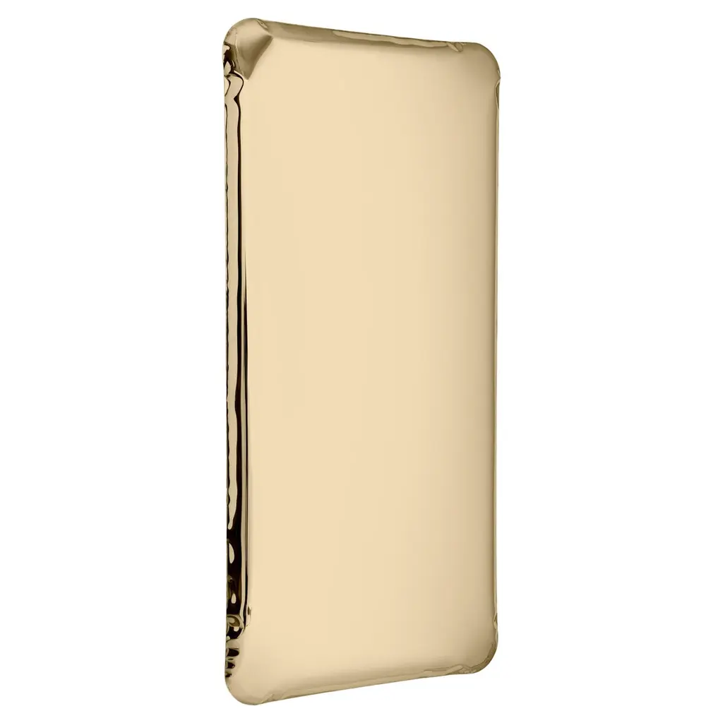 "Tafla Q1" contemporary mirror by Zieta.Original Zieta mirror, delivered with certificate. Collection: Aurum (2021).Material: polished stainless steel.Finish: light goldSize: 180 x 60 x 6 cm.The 'Aurum' collection presents Tafla Q mirrors in warmer colours, such as light gold, classic gold and rose gold. Tafla Q is available in two sizes: Q1 (H 180 cm ) and Q2 (H 120 cm).Zieta is best known for his collection of stools “Plopp” made through the technologist Fidu. With the same principle Zieta Studio conceived mirror collections made of stainless steel called “Tafla”, “Rondo” and “Oko”. Two laser-cut metal sheets are first welded together before air is injected between them until they separate from each other forming a three-dimensional object.
