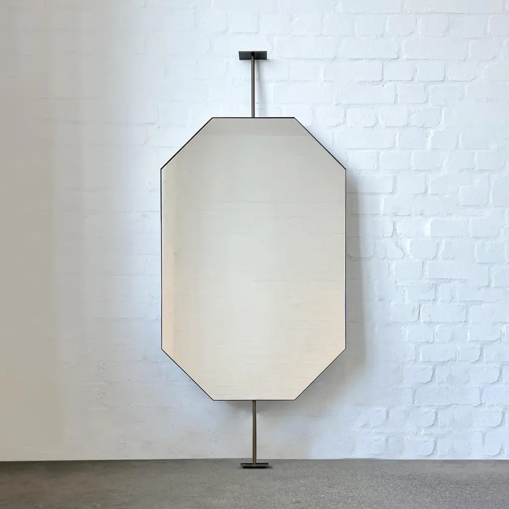 Contemporary Octagonal Countertop To Ceiling Attached Mirror Bronze Patina Frame