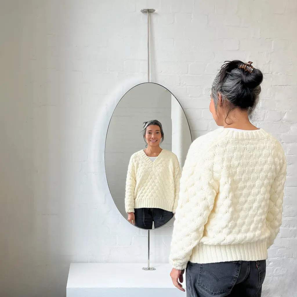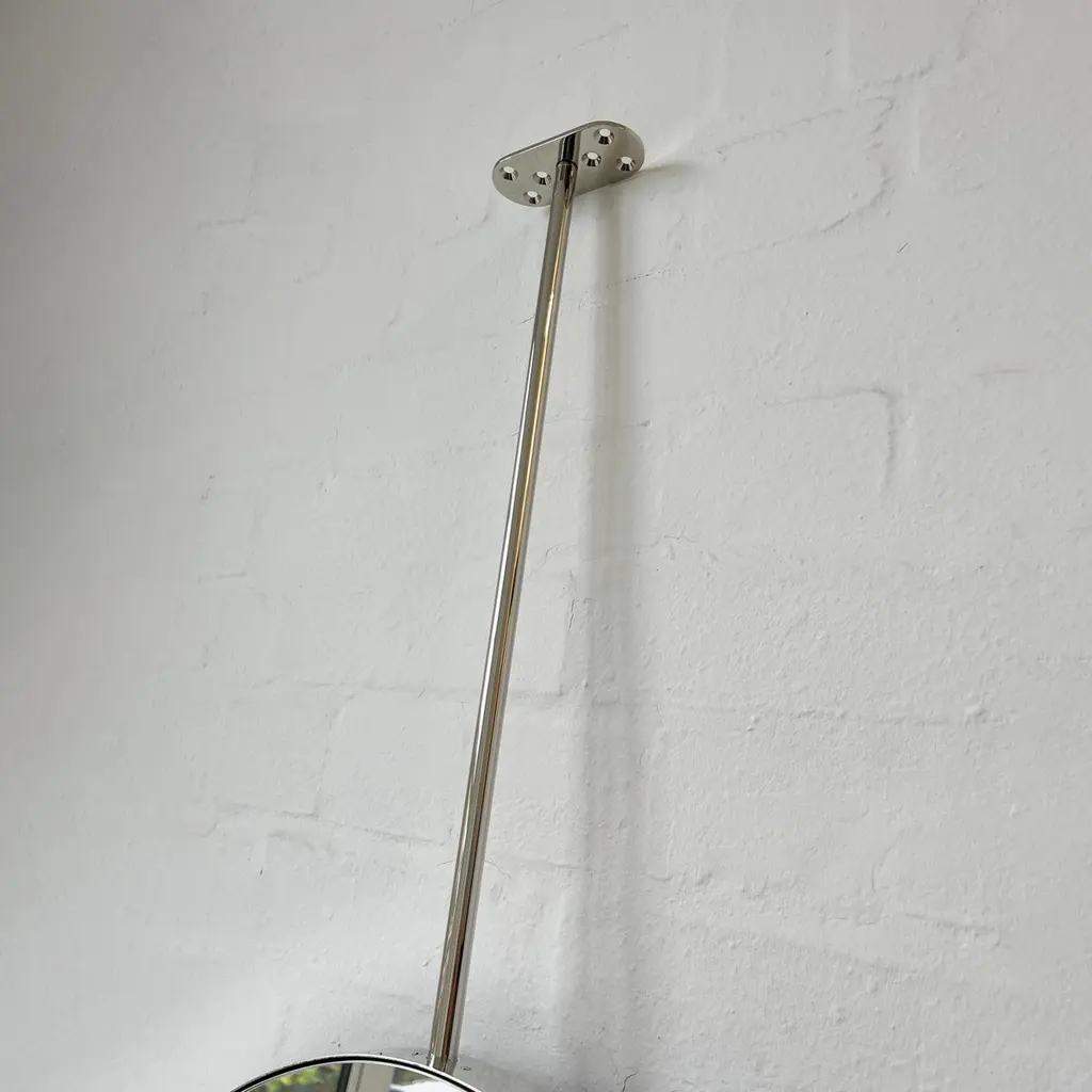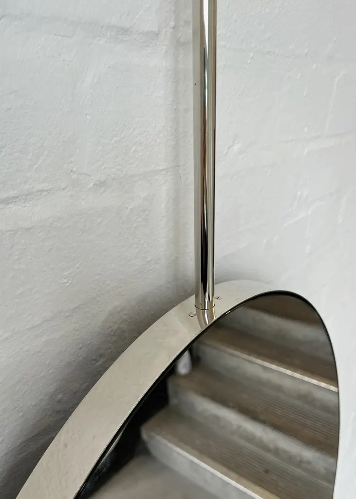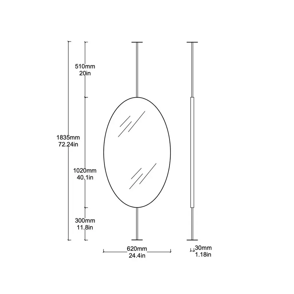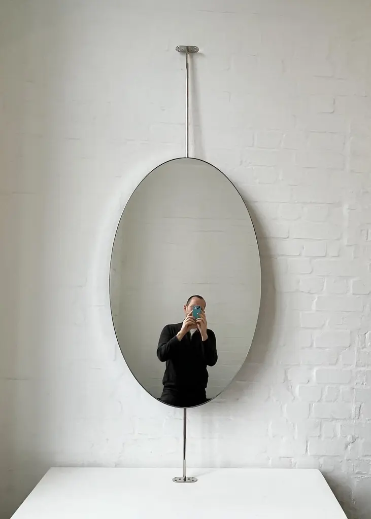 Ovalis™ countertop to ceiling attached oval mirror with an exquisite nickel plated frame. Designed and handcrafted in London, UK. This mirror is fully customisable.Dimensions:W 62cm x H 120cm x Overall Depth 10cm (Drop 51cm, Rise 30cm )W 47.2in x H 24.41in x Overall Depth 3.94in (Drop 20.1in, Rise 11.8in)Overall height: 201cm / 79.1inThe mirror dimensions, drop and rise are fully customisable. Please contact us for further information.The high quality finish of our suspended mirrors extends to their backings, which are made from a powder coated panel available in black or white. Backings can also be upgraded to a finish that matches the frame or can be substituted by a second mirror, making your mirror double sided.The ceiling plate is supplied with a cover hiding the screws to complete the minimalist design of the mirror.This mirror is fully customisable. Shipped safely and insured worldwide. All our mirrors are made on demand. Fabrication lead time for this particular mirror is approximately 6 to 7 weeks. Our mirrors are always shipped by courier express. Shipping via courier express typically requires 1 to 2 days to the UK, or 2 to 7 days outside the UK depending on the destination.Available options:• double sided mirror• backing in a finish that matches the frame• frame finishes: brass (brushed, polished or with a bronze patina), copper, stainless steel, blackened metal, powder coated aluminium in a range of standard or bespoke colours• full frame that extends to the front of the mirror• mirror tints: standard silver, black, bronze, gold, blue, rose gold / peach• back-illumination creating a halo effect• front-illumination around the periphery of the mirror• ON/OFF sensor switch• demister pad• bevelA presentation illustrating the options above is also available on demand. Please contact us for a quote for any bespoke specification or added options.IMPORTANT NOTES:- This mirror is intended to be fitted onto a countertop and must be attached to the ceiling. Ceiling suspended mirrors or countertop mirrors are also available on demand.- Prices on the website do not include taxes and / or applicable import duties for deliveries outside the United Kingdom.ORDERS OF MULTIPLE MIRRORS OF THE SAME TYPE: Please contact us to receive a Packing and Shipping quote when ordering multiple mirrors of the same type. An order for multiple mirrors of the same type may not be accepted without extra packing and shipping fees. Thank you.