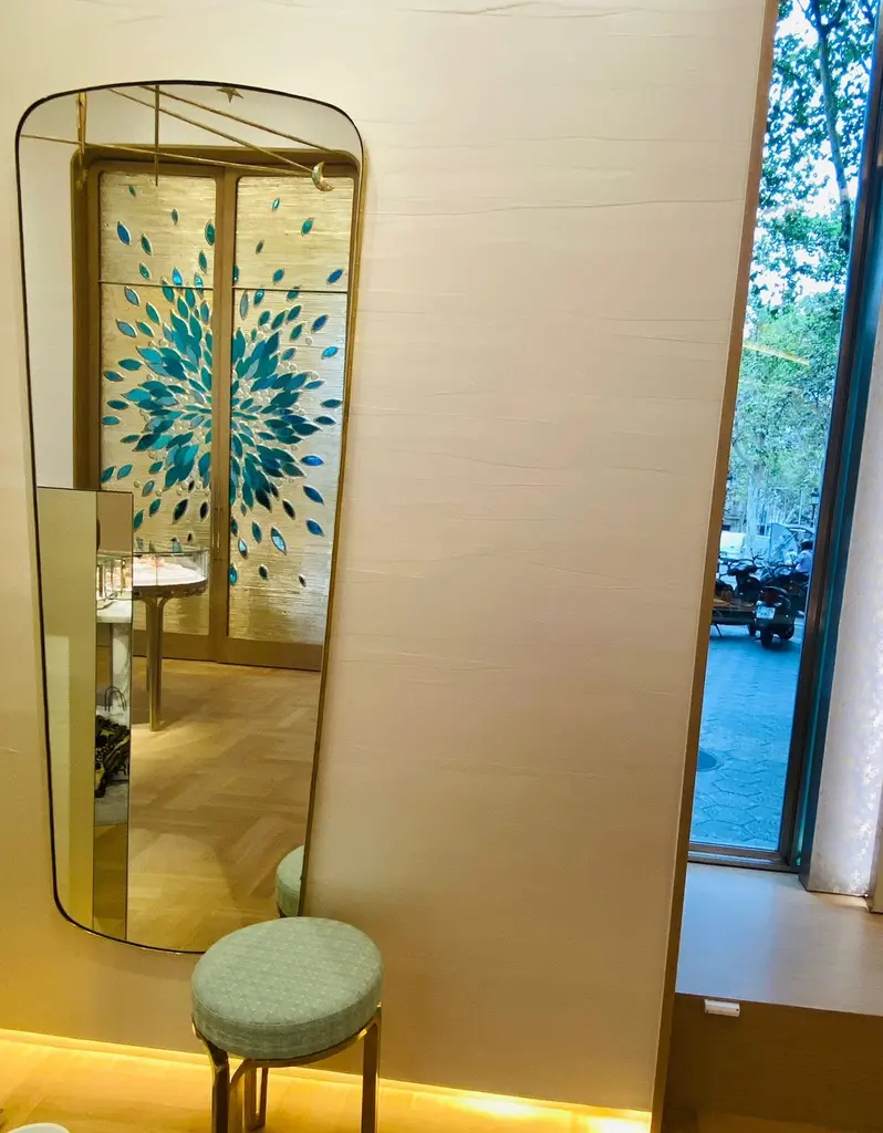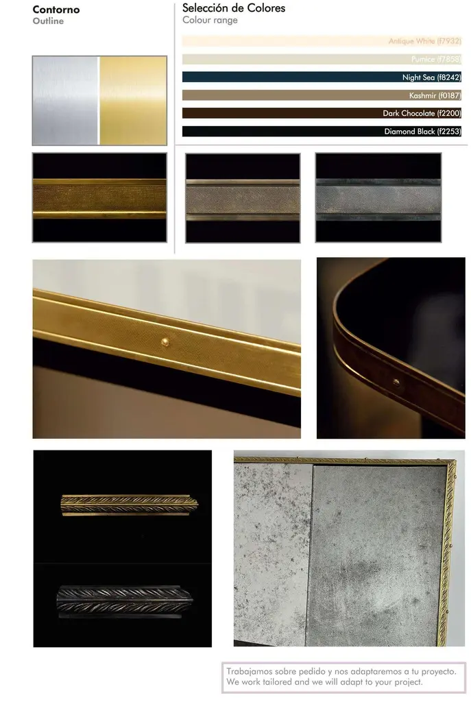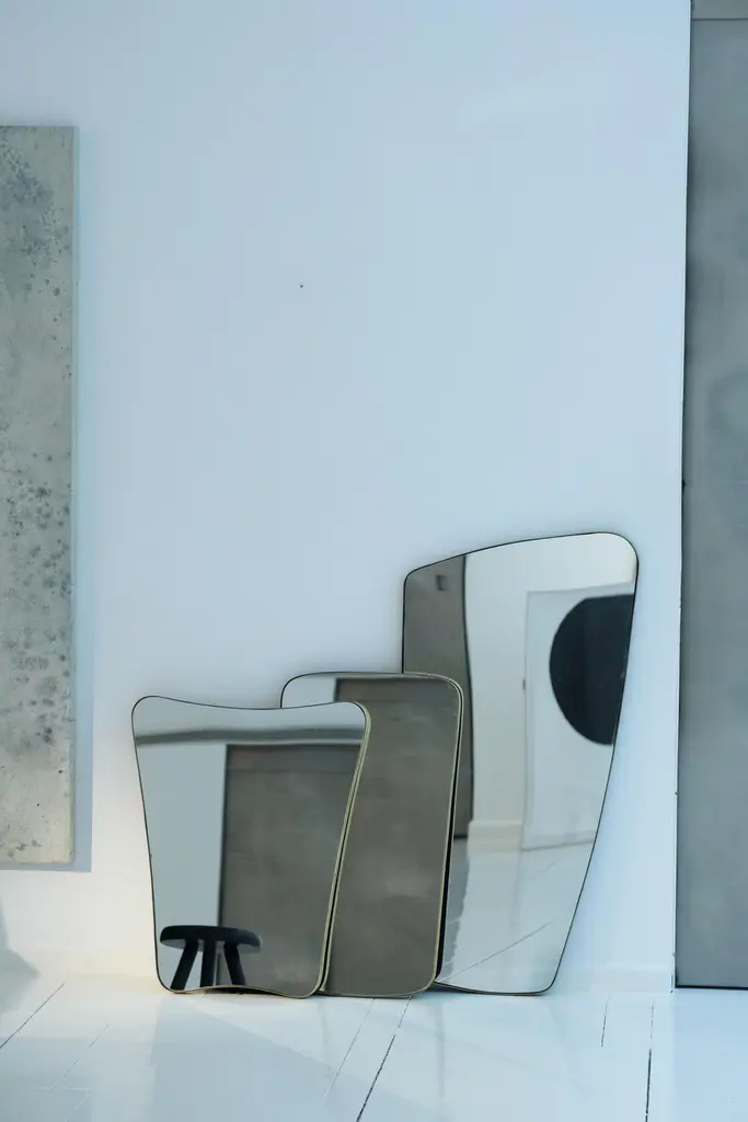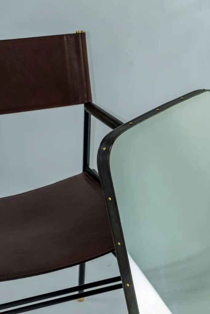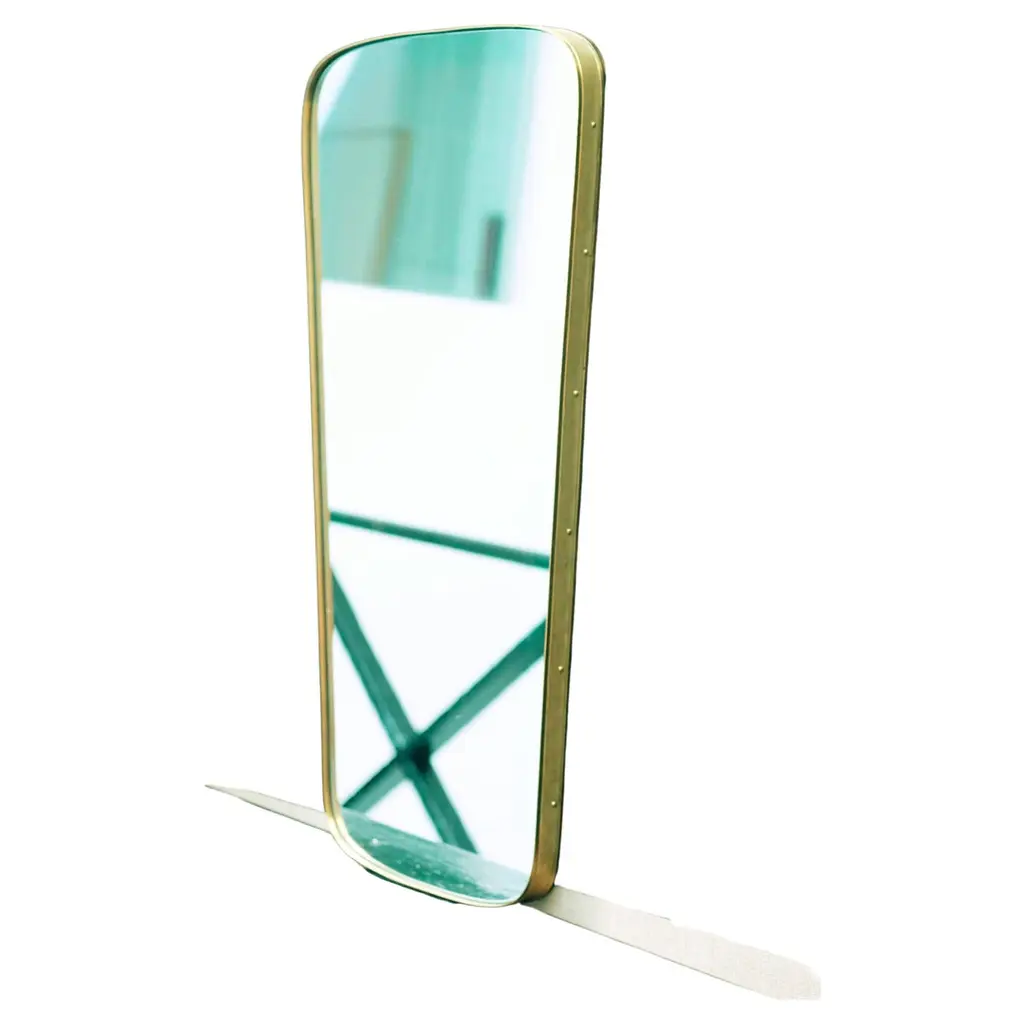 “Swing” Trapezio large. The contemporary rectangular mirror with rounded edges and embossed brass frame is an exceptional choice for those seeking a touch of elegance and refinement in their decor. Its Large size of 21,65/15,75x35 inches 55/40 x 89 cm makes it a perfect addition to a wall in need of a subtle yet sophisticated touch.The sleek and minimalist design of the mirror gives it a contemporary look that is suitable for a wide variety of spaces, from bedrooms to hallways and living rooms. The embossed brass frame adds texture and a sense of opulence that will perfectly complement any modern or contemporary decor scheme.In essence, the contemporary rectangular mirror with rounded edges and embossed brass frame is a high-end decor choice that is sure to elevate the look and feel of any space in your home or office. Its refined aesthetics and upscale materials are quintessential of the luxurious lifestyle.Fitted with professional plates not visible once installed for an easy and safe installation. Supplied with all accessories, including screws and wall plugs.4 sizes available, Handcrafted in Spain.