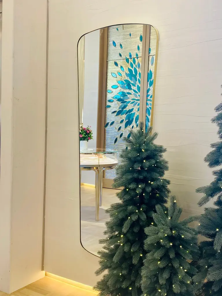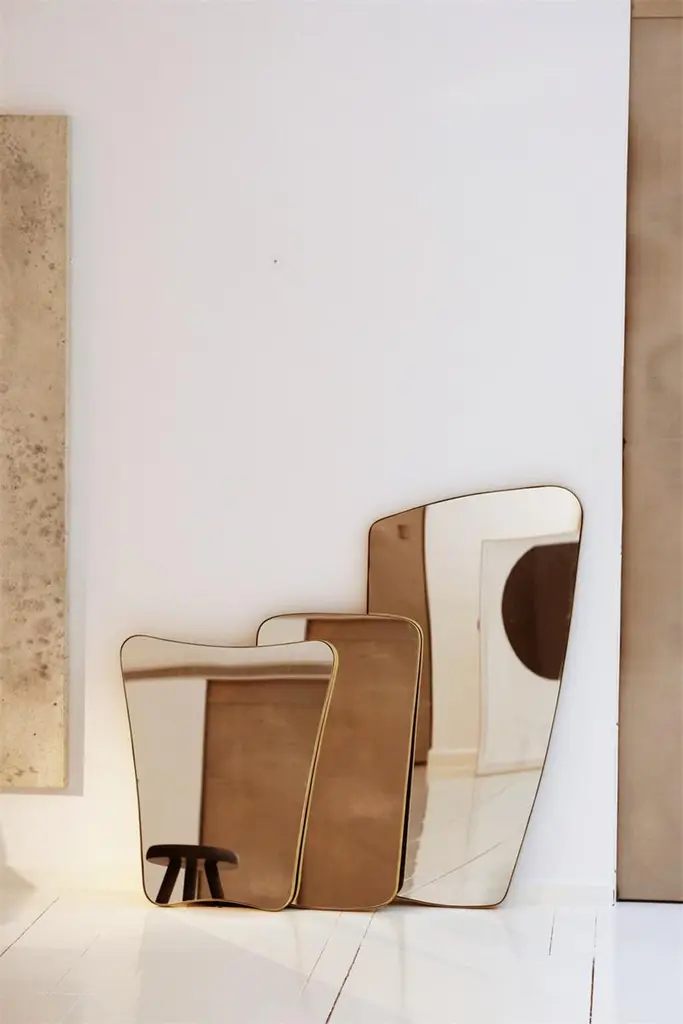 “Swing” Trapezio extra large. The contemporary rectangular mirror with rounded edges and embossed brass frame is an exceptional choice for those seeking a touch of elegance and refinement in their decor. Its Extra Large size of 29,9/22,8x76 inches 76/58 X 193 cm makes it a perfect addition to a wall in need of a subtle yet sophisticated touch.The sleek and minimalist design of the mirror gives it a contemporary look that is suitable for a wide variety of spaces, from bedrooms to hallways and living rooms. The embossed brass frame adds texture and a sense of opulence that will perfectly complement any modern or contemporary decor scheme.In essence, the contemporary rectangular mirror with rounded edges and embossed brass frame is a high-end decor choice that is sure to elevate the look and feel of any space in your home or office. Its refined aesthetics and upscale materials are quintessential of the luxurious lifestyle.Fitted with professional plates not visible once installed for an easy and safe installation. Supplied with all accessories, including screws and wall plugs.4 Sizes available, Handcrafted in Spain.