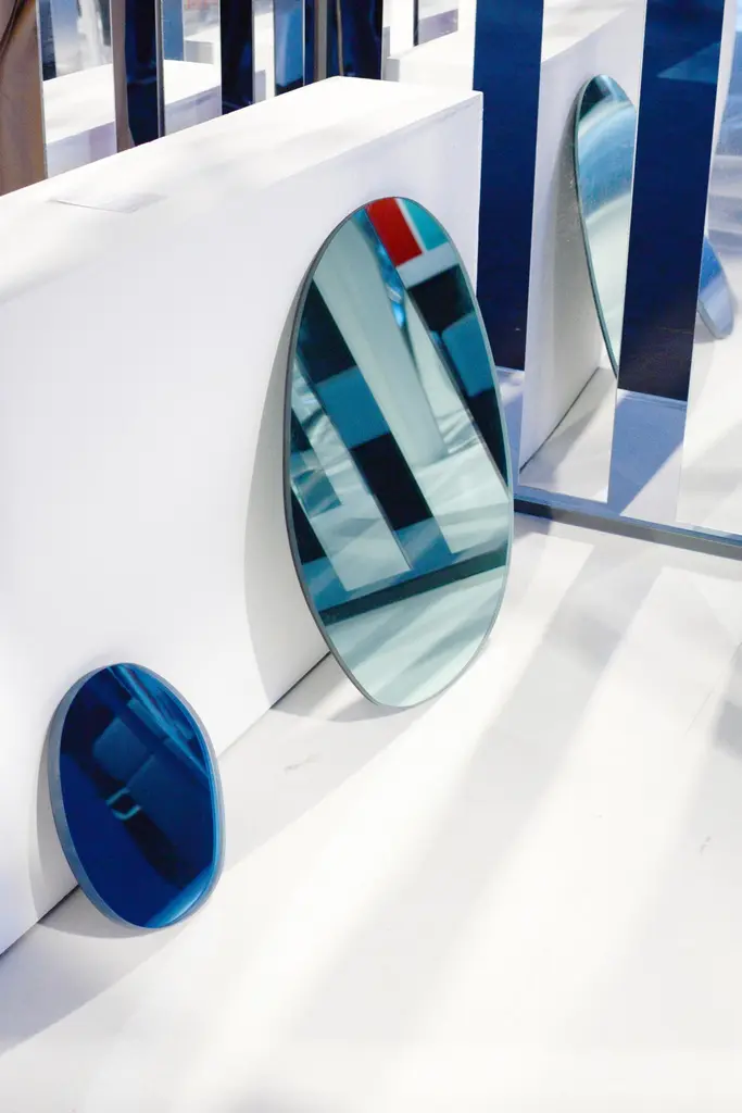 Available sizes:Off Round 450, H450xW380xD25mmOff Round 550, H550xW503xD25mmOff Round 700, H700xW620xD25mmOff Round 900, H900xW845xD25mmOff Round 980, H980xW1000xD25mmOff Round 1100, H1100xW990xD25mmOff Round Thin 400, H400xW352xD17mmOff Round Thin 650, H650xW548xD17mmOff Round Thin 850, H850xW777xD17mmAvailable Colours: BlueBronzeGreen (pictured)RoséSilverCustom colours available on requestAbout: In 2013 Sabine Marcelis and Brit van Nerven started collaborating on the project ‘Seeing Glass’ a series of glass objects resulting from an ongoing study into optical effects created with glass as the primary material. Glass specialists allowed the designers to play around and experiment in their factory to investigate new possibilities and through the use of materials, color and layering, unexpected effects are created which play with ones visual perception as well as the surrounding space. Invisible metal mounting system.