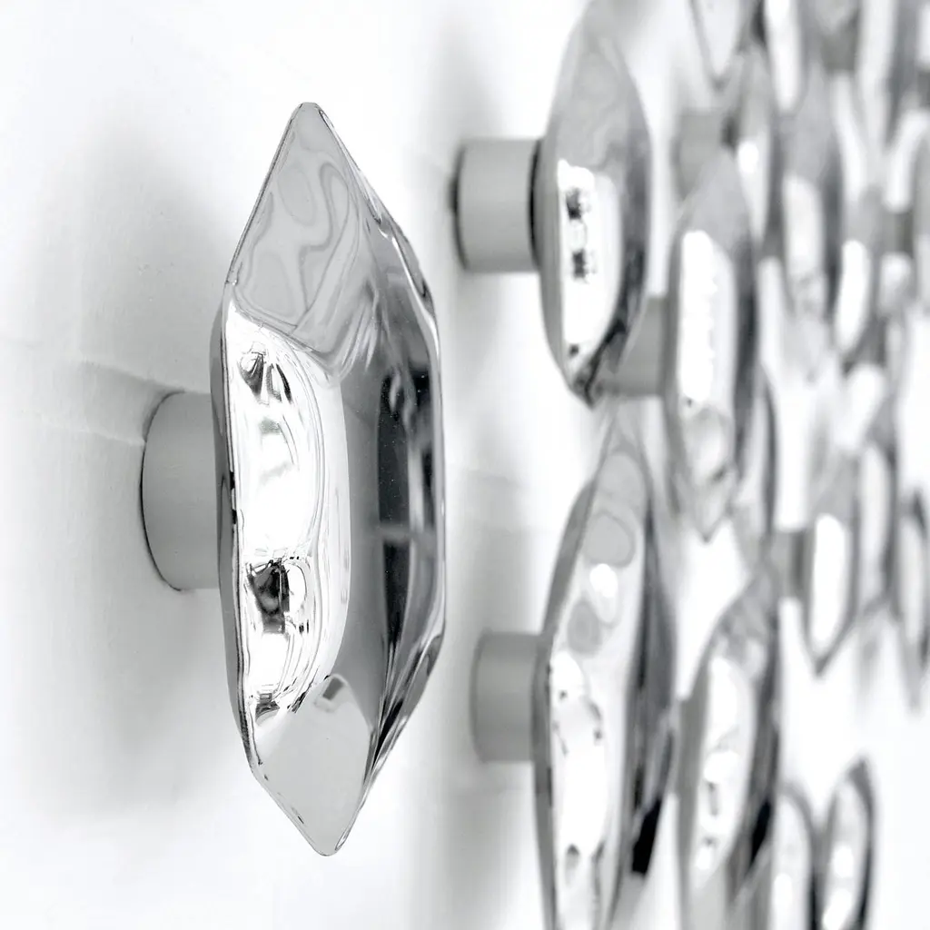 Set of 12 Kamyki Mirrors by ZietaMounted sculptureColor : EmeraldDimensions [cm]:Ø 7- 20 cm6 different formsThe Gradient Collection KAMYKI wall decor from Gradient Collection is a series of geometric objects of various sizes and shapes made of steel in FiDU technology. They resemble irregular stones or pieces of shattered glass offer and can be arranged on the wall in many ways. You can mix KAMYKI of various sizes within one chosen finish – sapphire or emerald – or you can mix them according to your needs and fantasy.KAMYKI come in different diameters from 7 to 20 cm and are available in sets of 6, 12 and 18 pieces.The Gradient collection combines an exceptional depth and unparalleled reflections of the colorized surfaces. Soft transitions between colors provide the viewers intensive visual experiences. A change of point of view leads to a change in color perception. Mirrors from the Gradient series are made of stainless steel, polished to a mirror finish and covered with a special lacquer, creating on their surface a unique composition of colors with exceptional depth and unparalleled reflections.