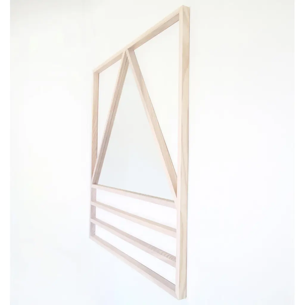 The "Simplex" mirror is from the 2015 collection of Alex Drew & No One. Inspired by traditional craftsmanship while incorporating a modern edge, AD & NO's work plays on light, textures, and form.Each piece is handcrafted by Alex Rosenhaus and Drew Arrison in Detroit, MI.Measures: 40” L x 36” W x 1-3/4” HSolid white washed Ash with a lacquered frame.Recessed clear mirror.Custom materials, sizes, and finishes available.Made to order: Lead time 4-6 weeks.