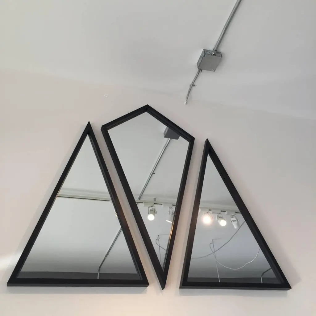 The “Trio Geometric Mirrors" are from the 2016 collection of Alex Drew & No One. Inspired by traditional craftsmanship while incorporating a modern edge, AD&NO's work plays on light, textures, and form. Custom sizes, materials, and finishes are available.(Detail images are shown with AD&NO's Isosceles Mirror)Each piece is handcrafted by Alex Rosenhaus and Drew Arrison in Detroit, MI.Sold as a set of three mirrors. One Diamond Mirror and Two Isosceles Mirrors included in one set.