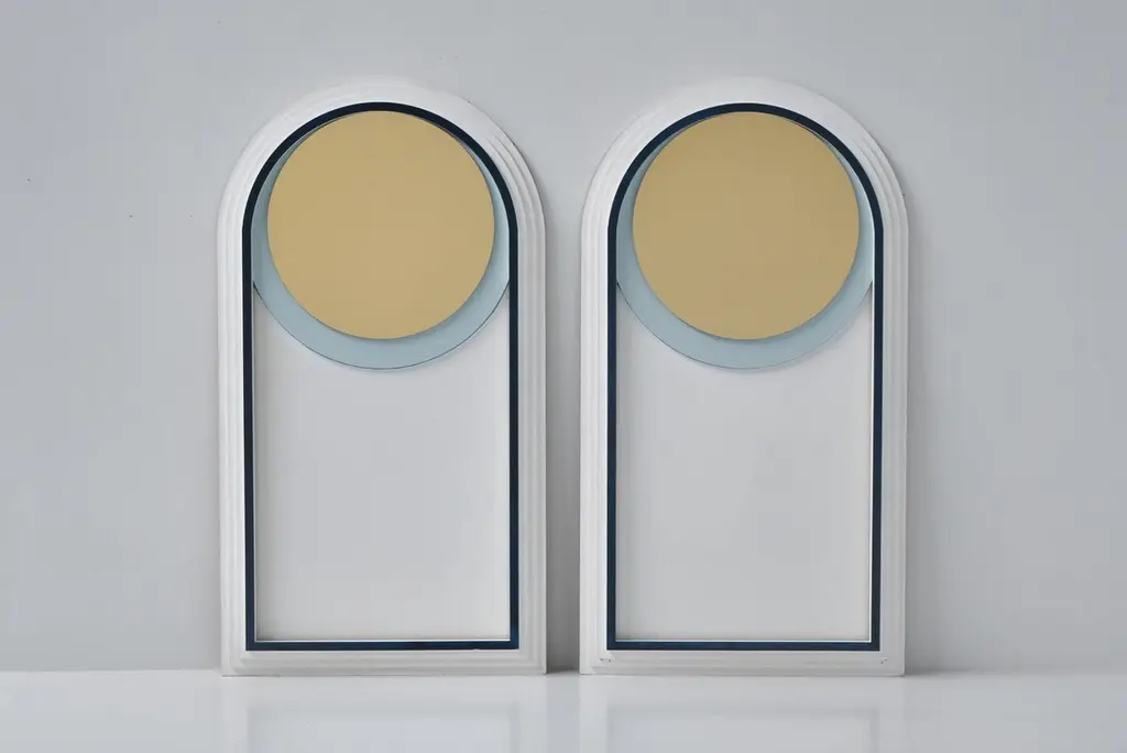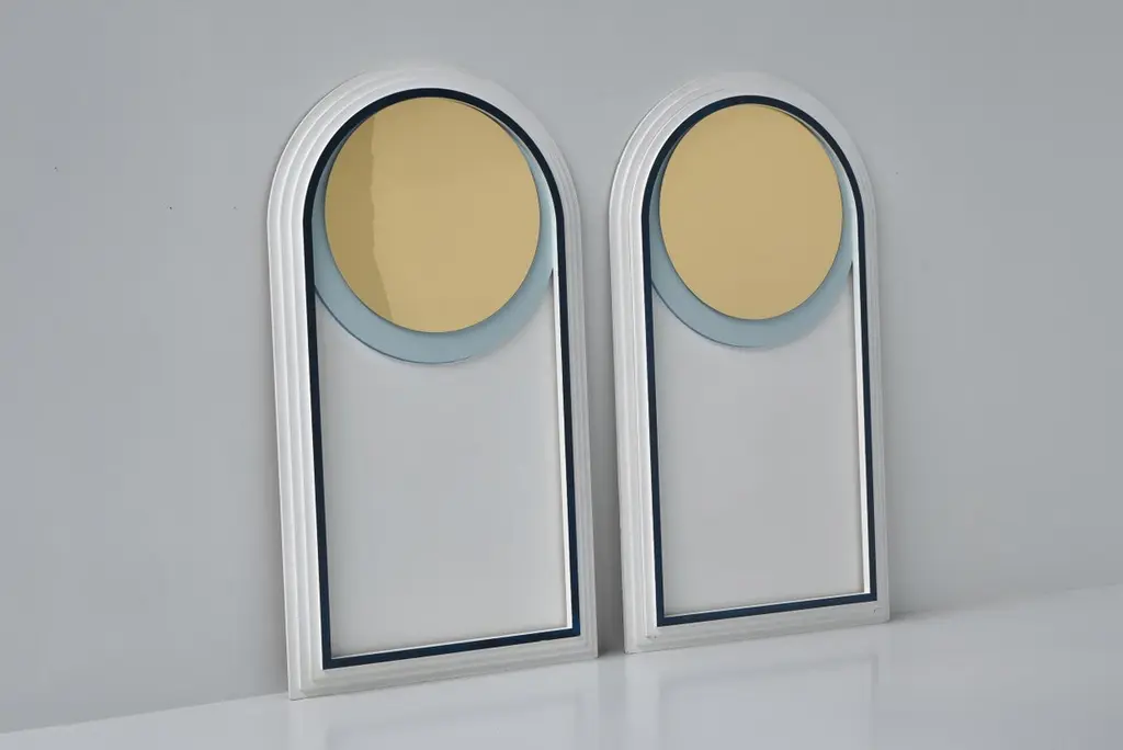 Athos Burez; Poiret; Wall mirrors; Decorative art; Contemporary; Collectible Design; Showroom Paris; Eclectic; Belgian design; Contemporary mirror designed for the 2018 Poiret Paris fashion week showroom by Athos Burez. These human-sized mirrors reflect the eclectic aesthetic of Belgian designer and photographer Athos Burez. With a very dreamy feeling to them, these mirrors bright warmth in any interior.