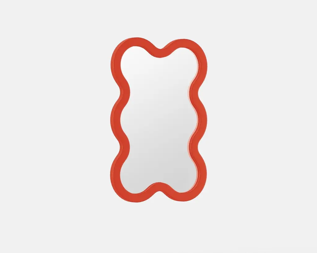 Contemporary Mirror 'Hvyli 6' by OitoproductsRed Ref Color RAL 2002Dimensions:W 52 cm x H 77 cm x D 4 cmW 20.5 in x H 30.3 in x D 1.3 inMaterials: Painted ecological water paint MDF, silver glass mirror, special rubber feet.AboutMelted, delicate forms have become a new world trend. With the help of modern high-tech productions, we can make our reality more complex and interesting.The collection of Hvyli mirrors will always be a beautiful accent in any interior: it can be a public space, a gallery, a cafe, a living room, or a bedroom. The mirrors have a monolithic, strong frame that protects the glass from mechanical damage during transportation.Also, the mirror has special rubber feet on the bottom. It is possible to add a wall mount.There are five types of sizes in the collection, which you can find in the catalog.About OitoproductsOitoproducts is a young Ukrainian brand from Kiev. They want to change furniture trends and add more fashion and value to the product. Their mission is to make furniture part of thinking fashion, not just a daily item. They spend a lot of time on visual and technical beauty. Each product of the line is complex. They value manual labor and try to make every detail meaningful and quality.They support local manufacturers and create new items together. At the moment, Ukraine is not a big industrial giant, but there is a highlight. All our items are the result of manual labor, and it is always warmer and more emotional.