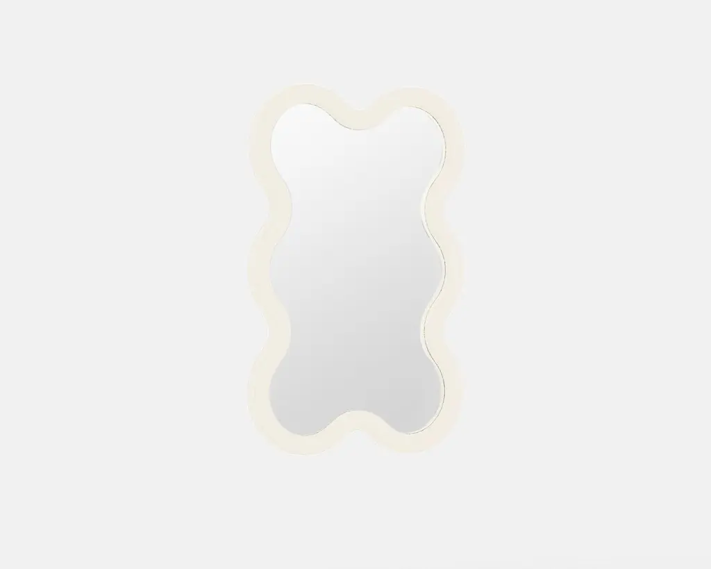 Contemporary Mirror 'Hvyli 6' by OitoproductsWhite Ref Color RAL 9010Dimensions:W 52 cm x H 77 cm x D 4 cmW 20.5 in x H 30.3 in x D 1.3 inMaterials: Painted ecological water paint MDF, silver glass mirror, special rubber feet.AboutMelted, delicate forms have become a new world trend. With the help of modern high-tech productions, we can make our reality more complex and interesting.The collection of Hvyli mirrors will always be a beautiful accent in any interior: it can be a public space, a gallery, a cafe, a living room, or a bedroom. The mirrors have a monolithic, strong frame that protects the glass from mechanical damage during transportation.Also, the mirror has special rubber feet on the bottom. It is possible to add a wall mount.There are five types of sizes in the collection, which you can find in the catalog.About OitoproductsOitoproducts is a young Ukrainian brand from Kiev. They want to change furniture trends and add more fashion and value to the product. Their mission is to make furniture part of thinking fashion, not just a daily item. They spend a lot of time on visual and technical beauty. Each product of the line is complex. They value manual labor and try to make every detail meaningful and quality.They support local manufacturers and create new items together. At the moment, Ukraine is not a big industrial giant, but there is a highlight. All our items are the result of manual labor, and it is always warmer and more emotional.