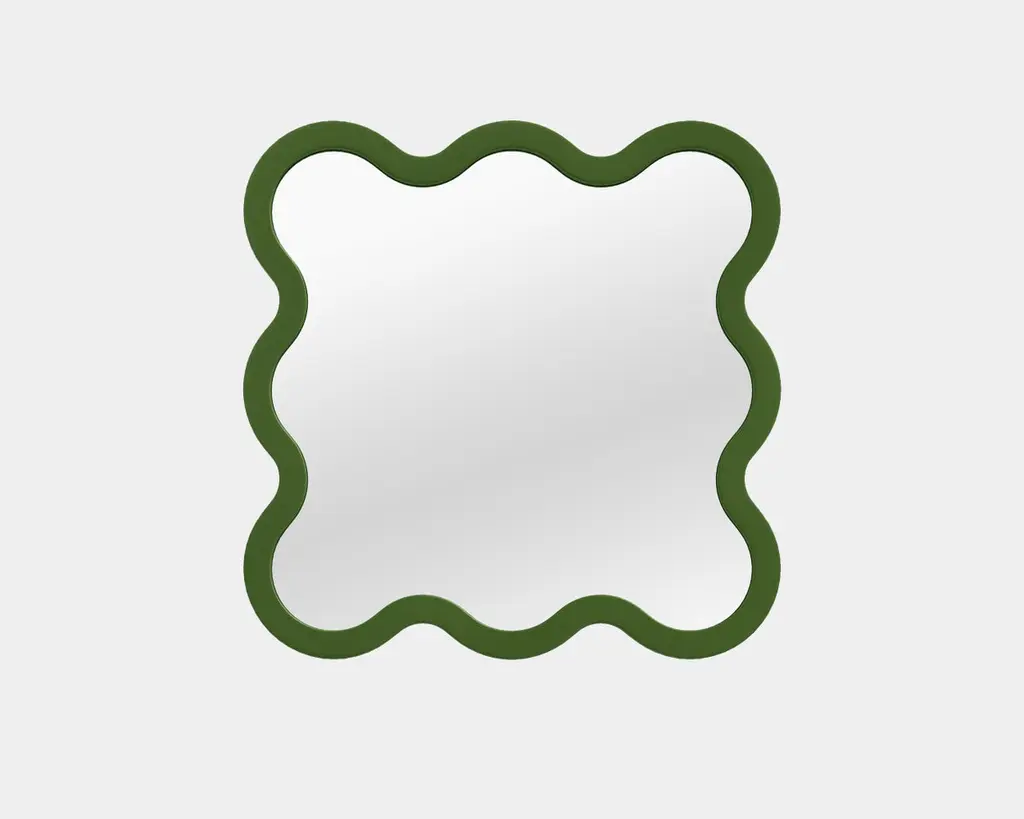 Contemporary Mirror 'Hvyli 8' by OitoproductsGreen - RAL6002Dimensions:W 77cm x H 77cm x D 4cmW 30.3 in x H 30.3 in x D 1.2 inMaterials: Painted ecological water paint MDF, silver glass mirror, special rubber feet.AboutMelted, delicate forms have become a new world trend. With the help of modern high-tech productions, we can make our reality more complex and interesting.The collection of Hvyli mirrors will always be a beautiful accent in any interior: it can be a public space, a gallery, a cafe, a living room, or a bedroom. The mirrors have a monolithic, strong frame that protects the glass from mechanical damage during transportation.Also, the mirror has special rubber feet on the bottom. It is possible to add a wall mount.There are five types of sizes in the collection, which you can find in the catalog.About OitoproductsOitoproducts is a young Ukrainian brand from Kiev. They want to change furniture trends and add more fashion and value to the product. Their mission is to make furniture part of thinking fashion, not just a daily item. They spend a lot of time on visual and technical beauty. Each product of the line is complex. They value manual labor and try to make every detail meaningful and quality.They support local manufacturers and create new items together. At the moment, Ukraine is not a big industrial giant, but there is a highlight. All our items are the result of manual labor, and it is always warmer and more emotional.