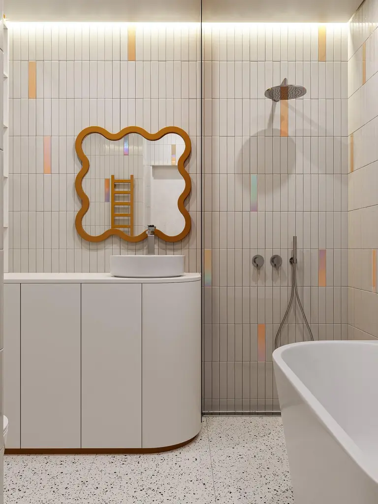 Contemporary Wall Mirror 'Hvyli 8' By Oitoproducts, Light Pink Frame