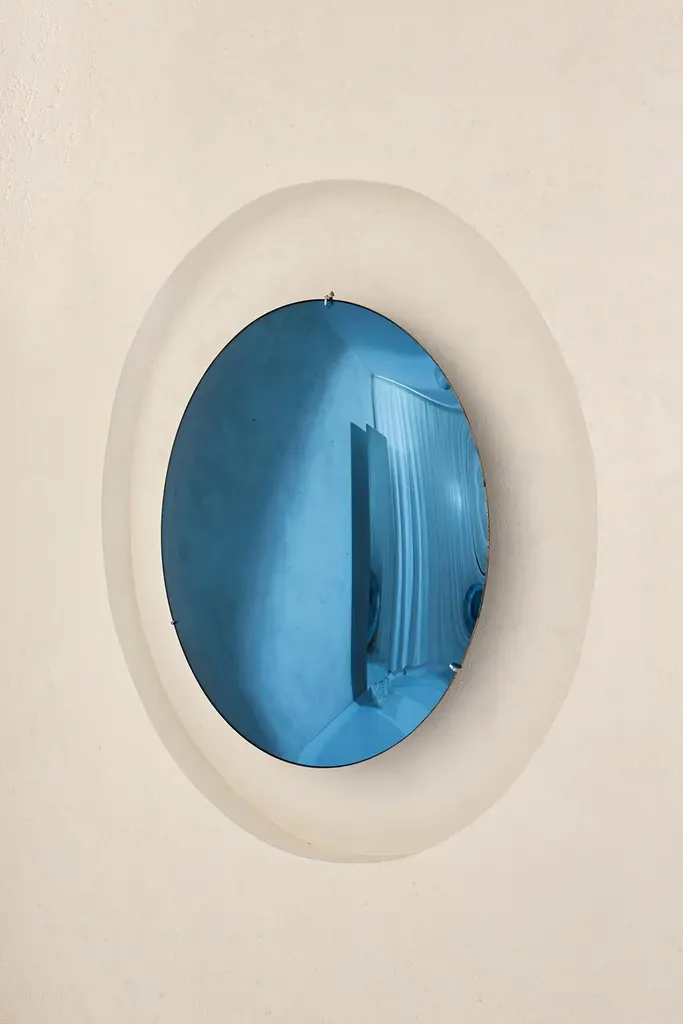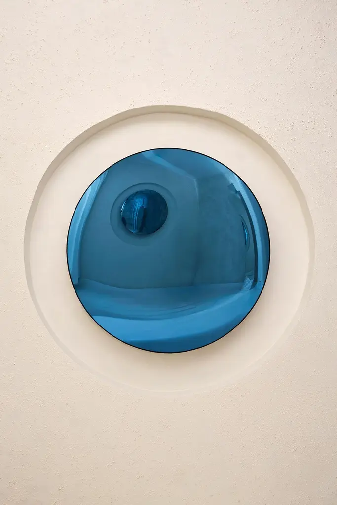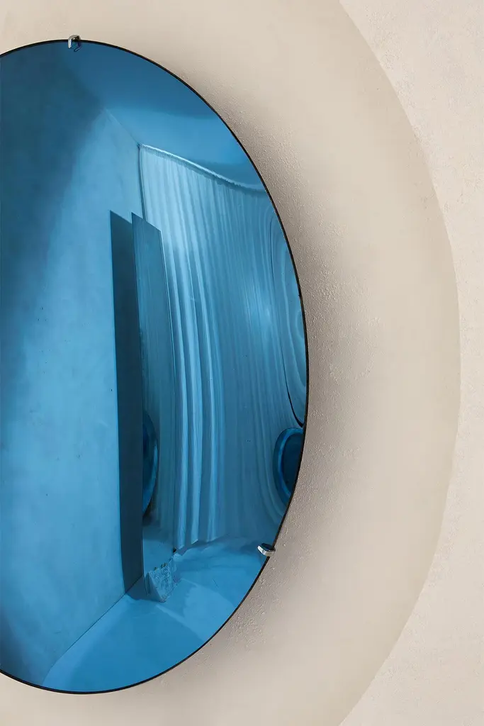 Convex Dark Blue Mirror by HomaDimensions: D 97 x H 7 cmMaterials: Convex Oxidized Mirror. HOMA is a contemporary design atelier based in Istanbul. The atelier’s trademark processes are handblown glass, glass fusing and mirroring, created through the use of multidisciplinary techniques and materials. Over time, with meticulous research and experimentation HOMA has acquired unique expertise in mirrors, lighting and home interior objects thus elevating things of function to the status of art. Handcraft HOMA has discovered one of the last remaining masters of handcrafted mirroring in the Eastern Mediterranean. The atelier is original in its simultaneous use of different techniques to create organic and flowing mirror shapes. Each piece celebrates reflection, translucency, movement, light, time, multiple layering and aesthetic, spontaneity…Object HOMA’s pieces are an exploration of organic, abstract, as well as unexpected flowing lines and shapes. Our design service offer is presented in a catalogue of over 50 designs in fluid and geometric shapes achieved through multidisciplinary techniques.Materiality Through the use of mixed textures and the layering of mirror elements unexpected effects are created on glass, which play with one’s visual perception as well as the surrounding space. Glass, stone, marble, messing mirror techniques, bronze, wood and clay are just some of the Earth’s materials that find their way into HOMA’S offerings. HOMA offers a vast materials library.Architecture Formally trained in interior architecture, HOMA founder, Tuğba Koç has transformed her knowledge and experience into layered aesthetic design objects. Now, with a team of architects and artisans, Tuğba applies her hands in a workshop environment on interior and exterior objects to enrich earth-derived, breathing, living materials. HOMA’s interior objects are informed by art and driven by the philosophy that nothing artificial should be allowed to interfere with the energy of one’s living environment.