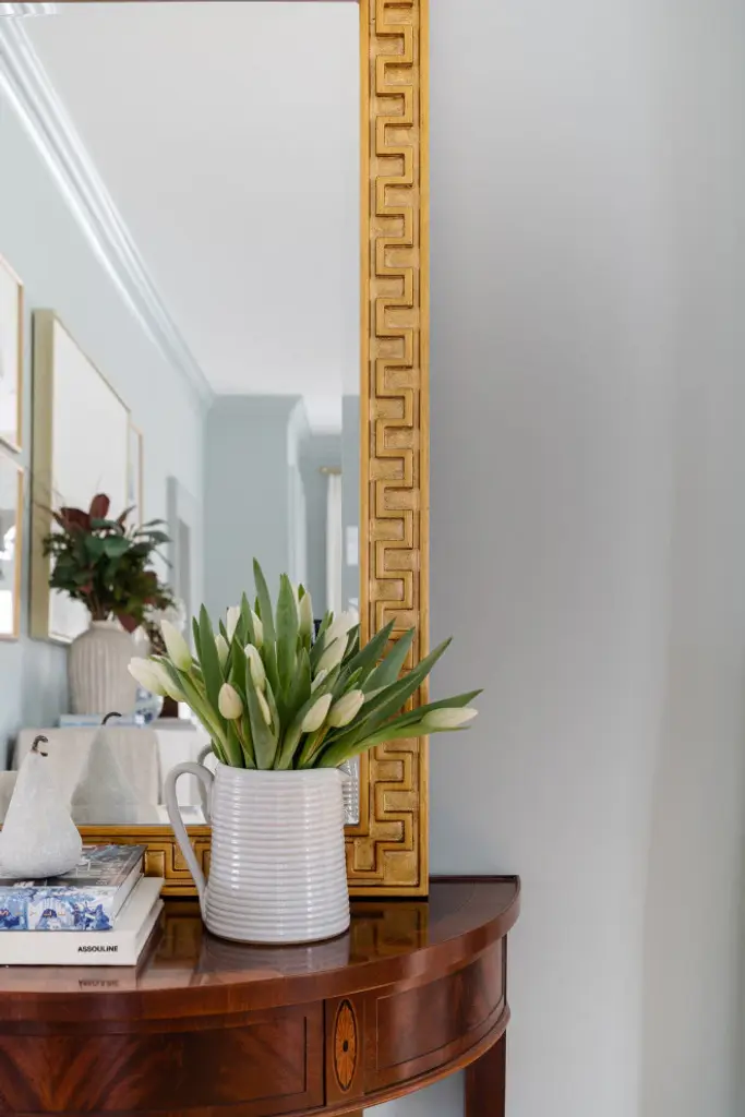 The beautiful Erin Gates Brook Gold wall mirror features intricate details and a modern look. This piece, Exclusively Designed by the lovely Erin Gates, in partnership with Cooper Classics, is sure to add a statement to a space of any style!Glass Dimensions: 30.25x19.25Hangs Both Ways: YesBeveled: YesUse Case: Commercially Approved, Outdoor/Damp-rated.Installation: Ready-to-hang with included, D-Ring Hangers.Details: Hand-crafted Frame, Hand-crafted FinishCare: Wipe Clean with a damp, microfiber cloth.Policy: Limited, 6-Month Manufacturer WarrantyExclusively Designed by Erin Gates, In Partnership with Cooper Classics