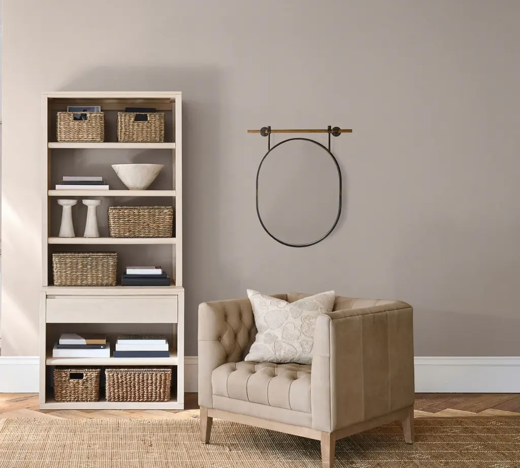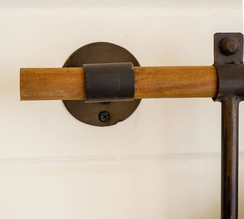 A rustic-meets-industrial mood distinguishes our circular wall mirror. Cooper is supported by a simple rod crafted of Asian pine wood and edged in slim metal for a compelling material mix. Perfect for a bath or entryway, its relaxed look suits country or urban-loft settings alike.