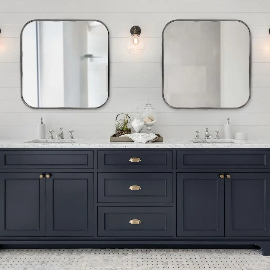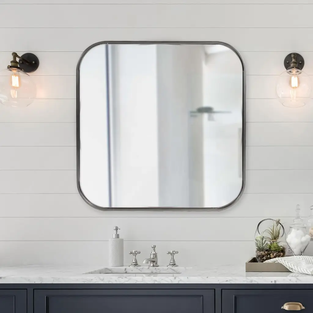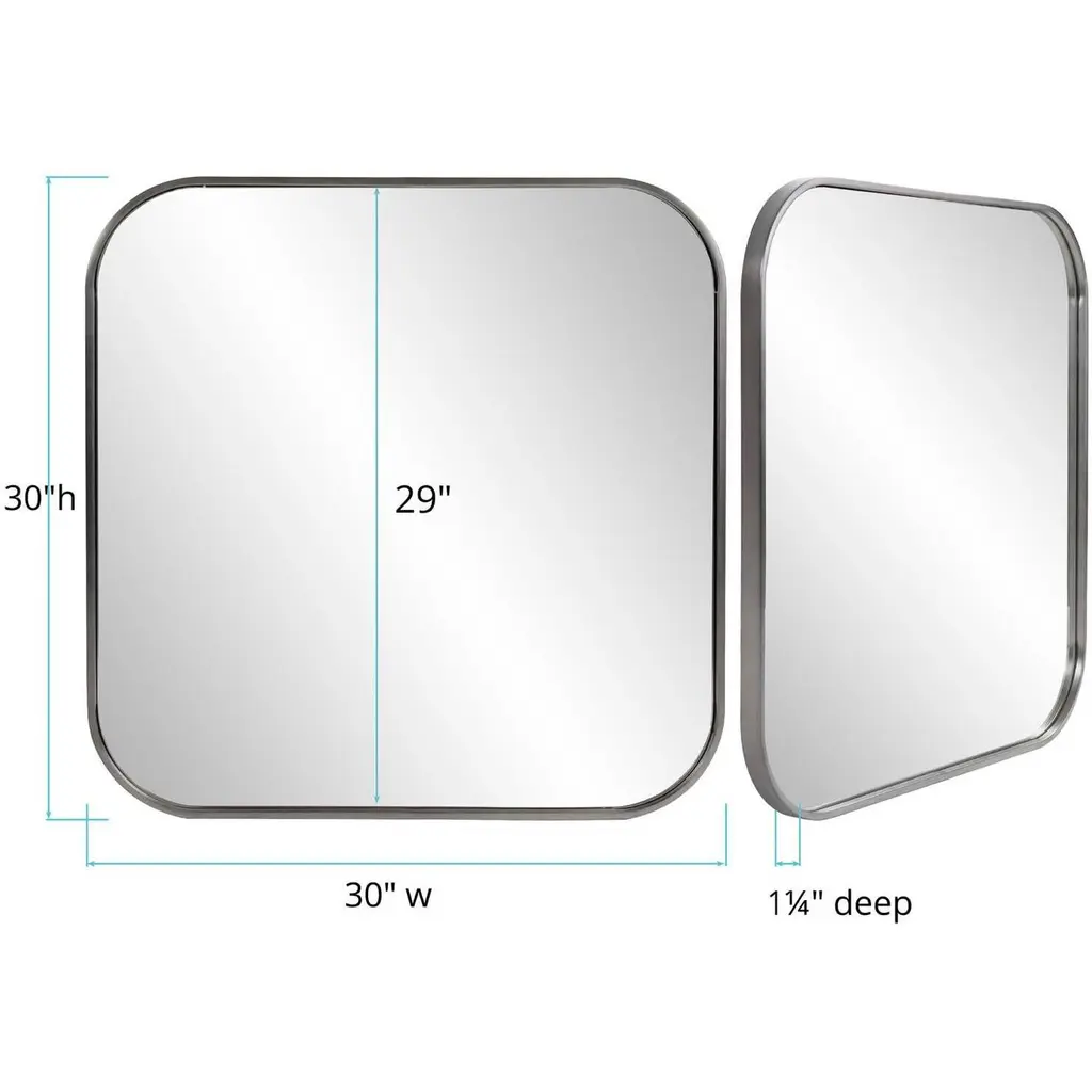 European styling is personified with the simply curves of the corners of the Copenhagen Mirror. This mirrors is an easy fit for over a vanity or massed out on a focal wall. The simple stainless steel frame features a square shape with rounded corners. It is finished in a sleek brushed silver. D rings are affixed to the back of the mirror so the piece is ready to hang right out of the box in a square or diamond orientation! Also available in additional finishes.