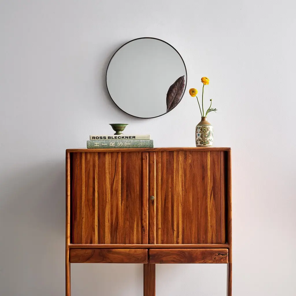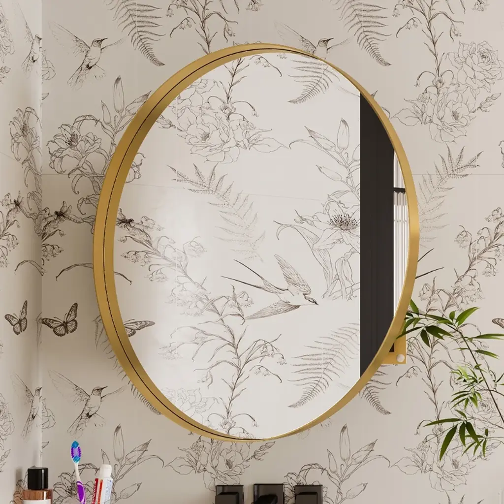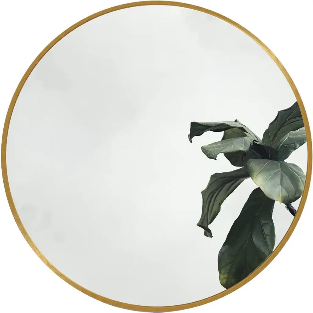 Handcrafted of copper, this Copper Leaf Round Mirror features a single folded leaf gently arching over the glass. Inspired by botanical form and crafted with precision, this piece is both functional and deeply expressive, a reflection of nature’s quiet strength, reimagined for the interior landscapes. Whether styled in an entryway, powder room, or layered gallery wall, this mirror anchors spaces with calm sophistication and a signature handmade touch.Our finishes are applied by hand rather than by machine and are influenced by various elements such as time, touch, and climate, which give each piece its own unique character. Each piece is unique, with slight variations, due to the artisan nature of our handcrafted finishing process. Handmade in the U.S.A., the lead time for the standard size is 6-8 weeks plus shipping.