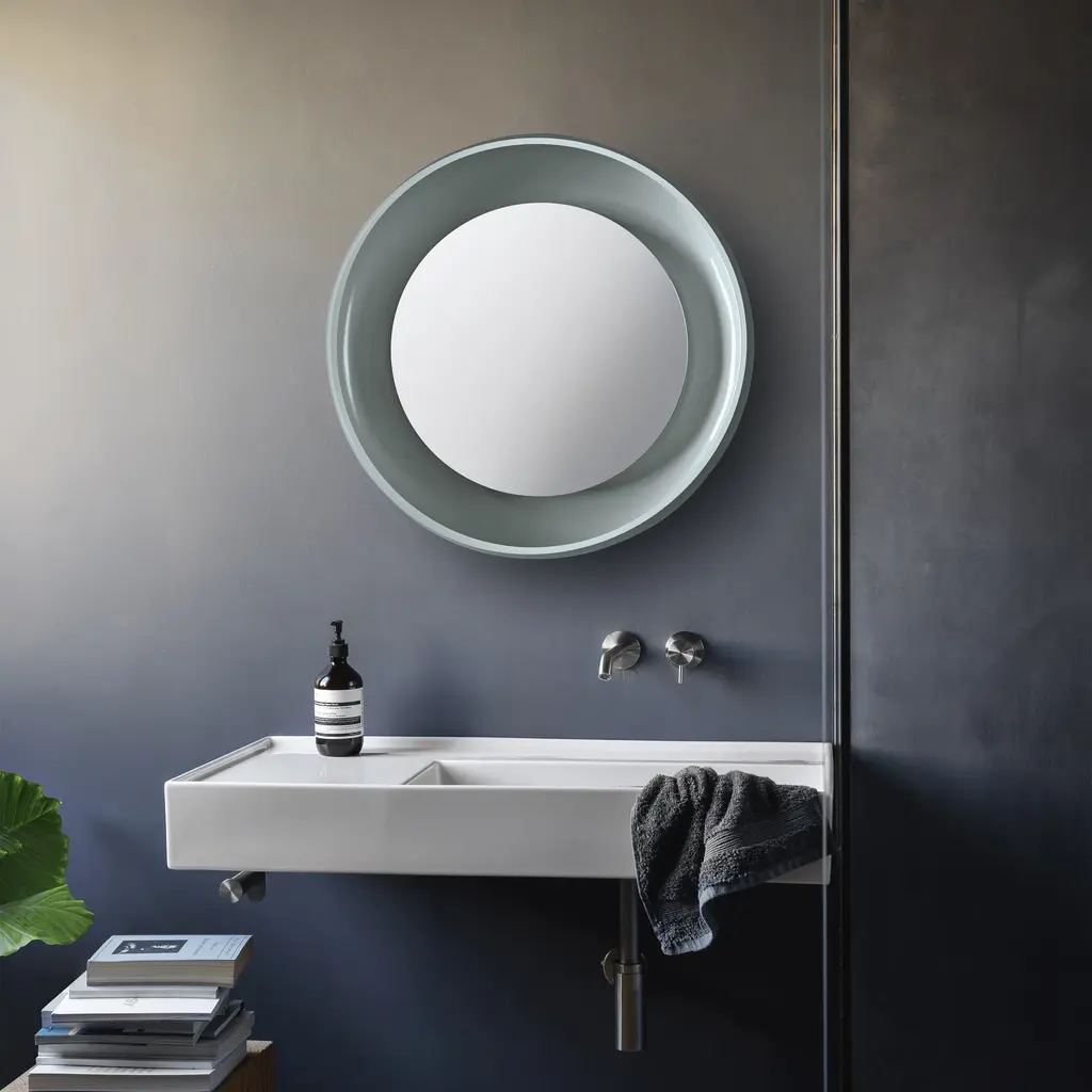 Create a striking statement in your living space with Coque Mirror from Miniforms, a dynamic and luxurious addition to your home. The ceramic outer shell provides protection while the glossy and matte finishes create beautiful contrasts. The inner surface is enameled for a shiny look, while the textured outer skin adds welcomed depth. Elevate your decor with this precious design object. Highlights