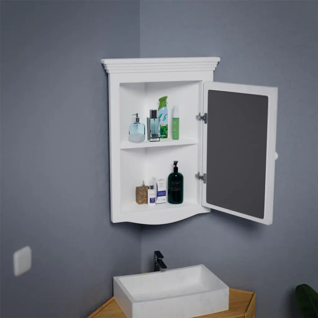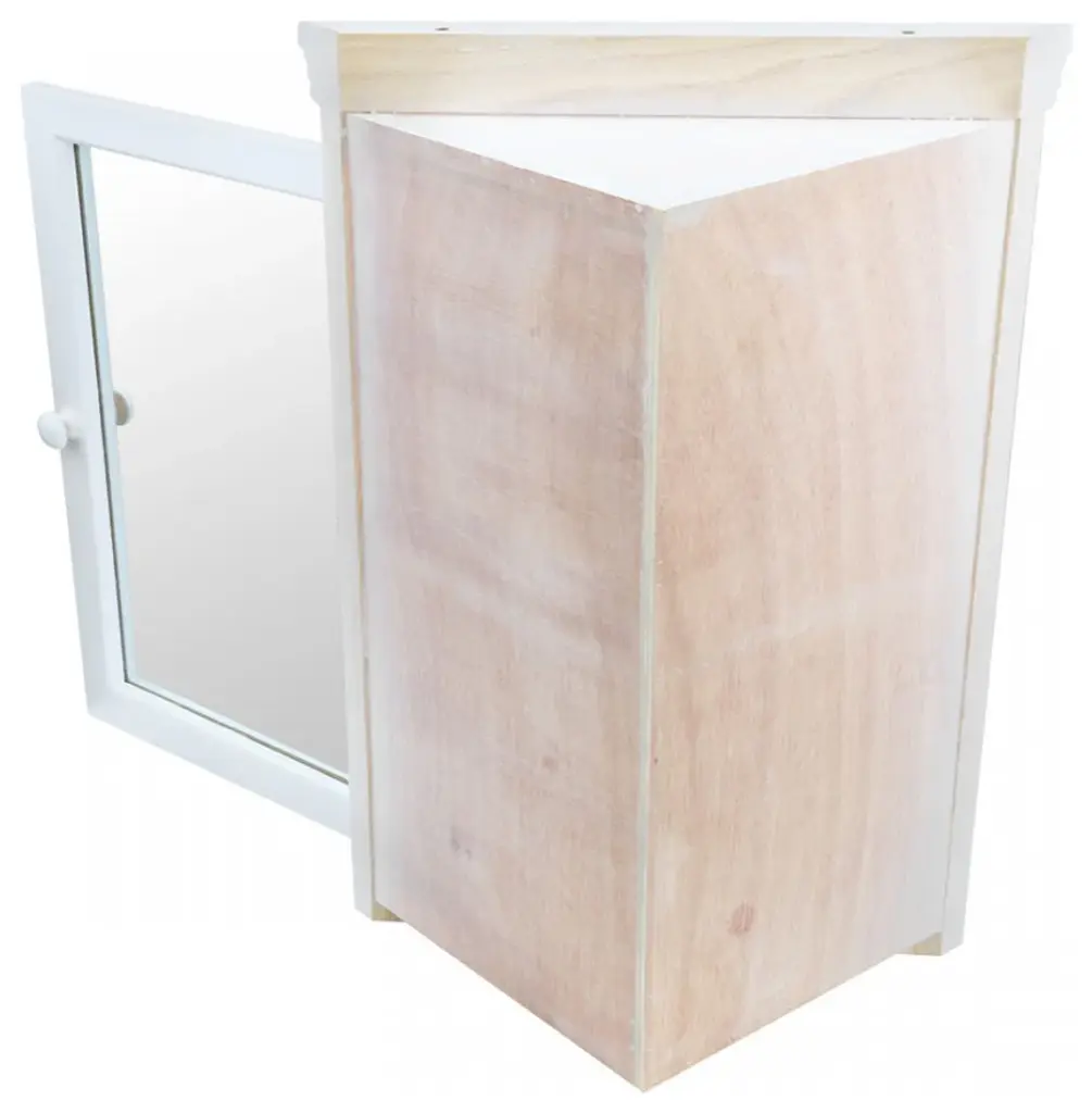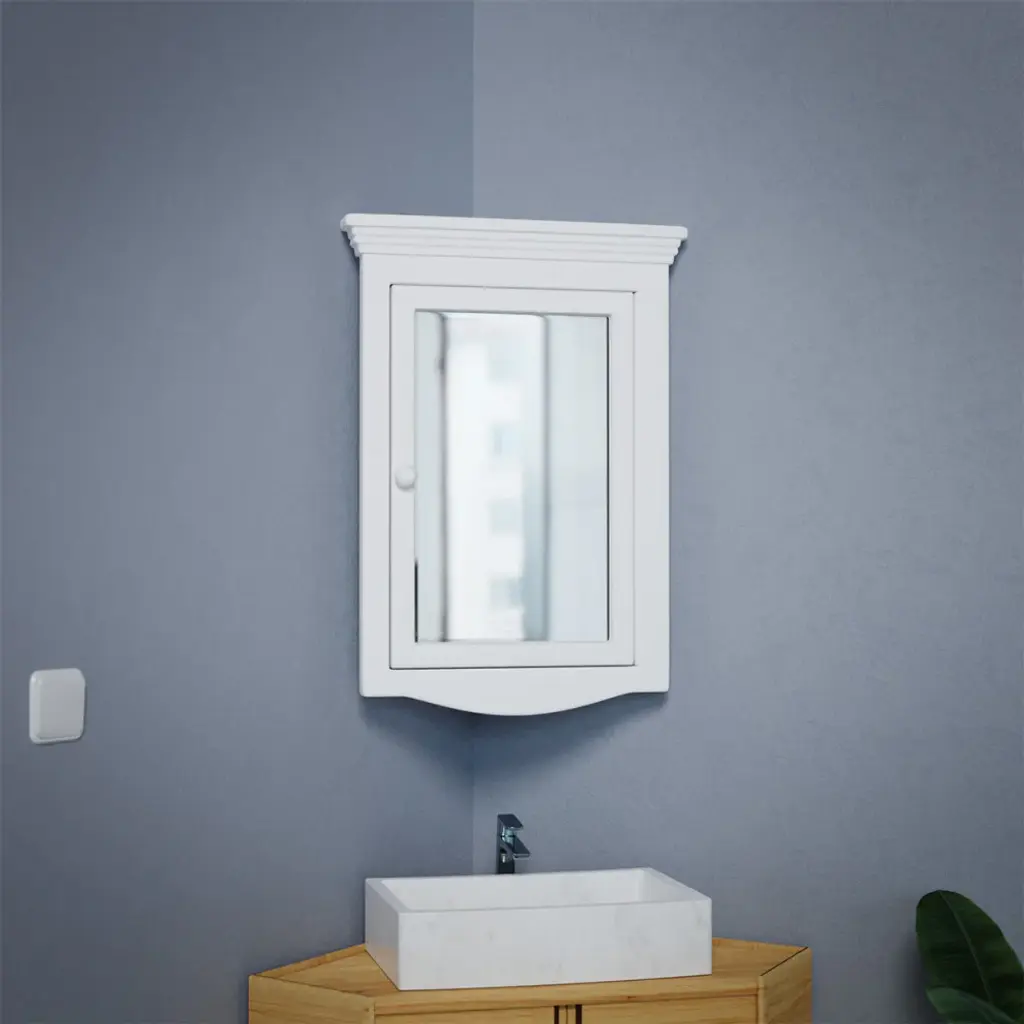 Corner Medicine Cabinet White Hardwood Wall Mount With Easy Clean Mirror