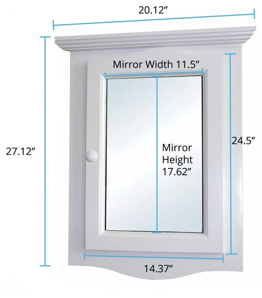 Item 17662 BETHPAGE CORNER WALL-MOUNT WOODEN MEDICINE CABINET WITH MIRROR Bethpage medicine cabinet from Renovators Supply is the ideal way to add some storage space in your bathroom corner with elegance. This corner wall-mount medicine cabinet features solid hardwood construction for longevity and durability in your medicine cupboard. Inside of Cabinet is Light Primed ready for you to paint in your favorite color. Corner cabinets use space efficiently to keep your bathroom from getting cluttered without losing cabinet storage space. Recessed framed mirror in door, it opens on the LEFT! FEATURES- Spacing saving corner-mounted design- Interior Light Primed Ready to be painted- Effortless and smooth open-close mechanism- Solid hardwood construction- Mounting hardware included- Premium quality mirror- Opens Left DIMENSIONS- Height = 27.13 Inches- Width = 20.13 Inches- Inner Depth = 7 Inches- Corner along wall = 14.3 Inches WHAT''S INCLUDED- One Wall Mount Corner Medicine Cabinet - Mounting Hardware Included BUILT WITH LOVE The package comes assembled with all the necessary mounting hardware required to make set up a breeze. These are carefully packed to avoid any scratches during the transition. Renovators Supply Manufacturing offers you great value products for your money and a perfect way to spend wisely - Own with pride!