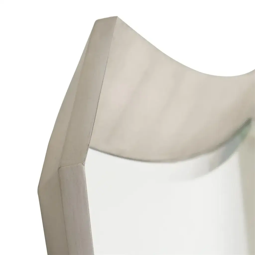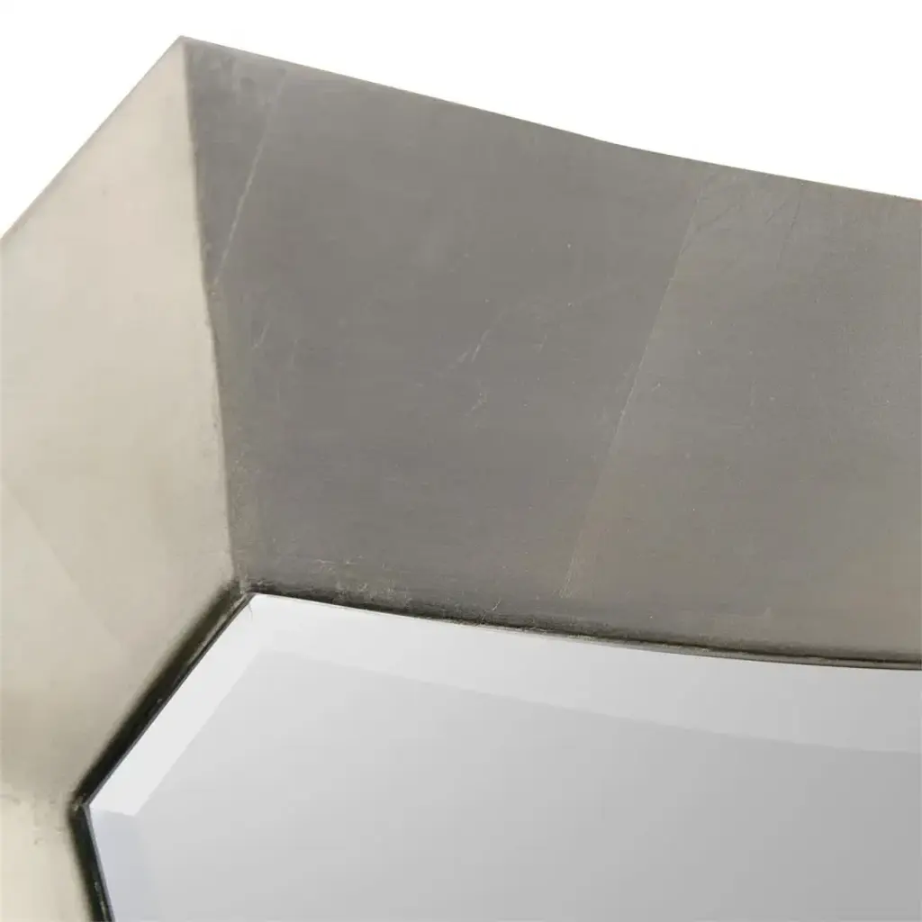 A simple and beautiful rectangular mirror framed in our Bright Silver Leaf with clear mirror and bevel. This mirror is prepared to hang in a portrait or landscape orientation.