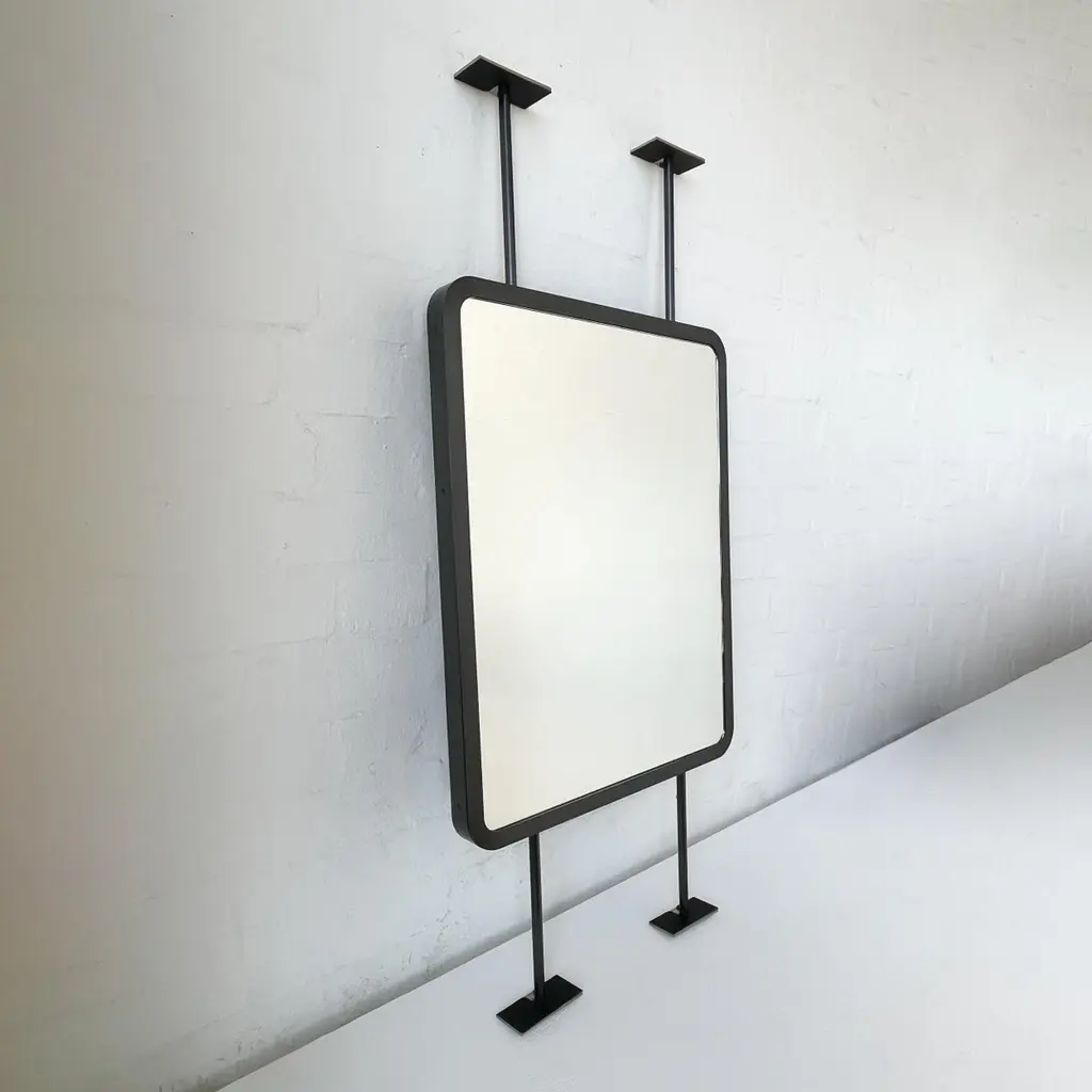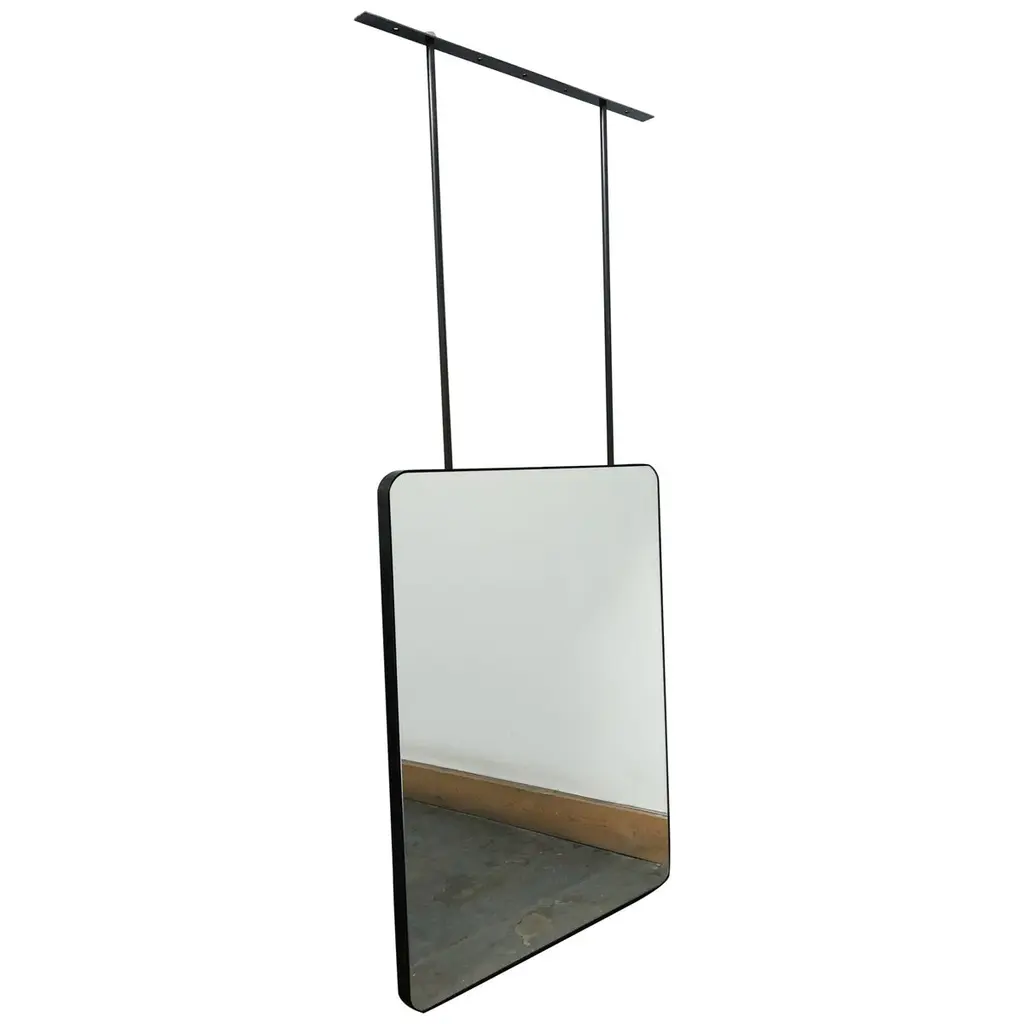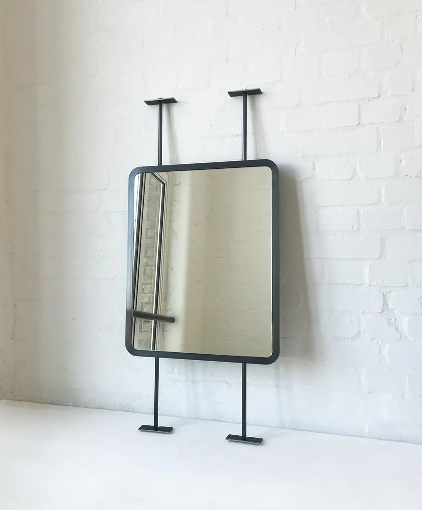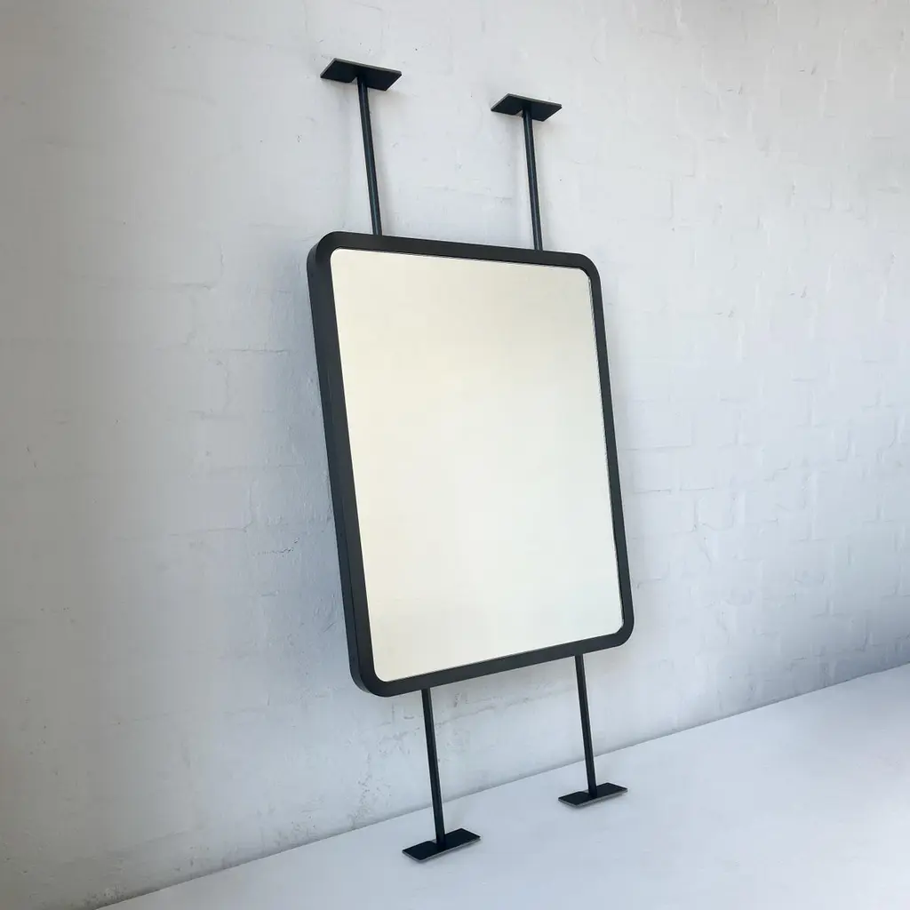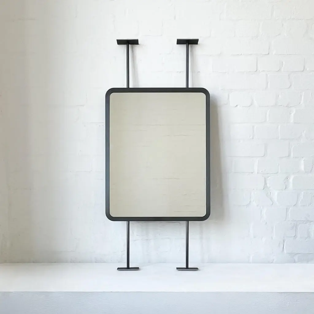 Contemporary countertop to ceiling attached Quadris™ rectangular mirror with a handcrafted blackened stainless steel full frame. Designed and made in London, UK. This mirror is fully customisable.Dimensions:H 61cm x W 48.3cm x D 3cm (Drop 22.2cm, Rise 22.2cm)H 24.2in x W 19.02in x D 1.2in (Drop 8.74in, Rise 8.74in)Overall height: 110.52cm / 41.42inThe mirror dimensions, drop and rise are fully customisable. Please contact us for further information.Mirror backing. The high quality finish of our countertop and suspended mirrors extends to their backings, which are made from a powder coated panel available in black or white. Backings can also be upgraded to a finish that matches the frame or can be substituted by a second mirror, making your mirror double sided.The ceiling plate is supplied with a cover hiding the screws to complete the minimalist design of the mirror.Shipped safely and insured worldwide. All our mirrors are made on demand. Fabrication lead time for this particular mirror is approximately 6 to 7 weeks by courier express, which typically requires 1 to 2 days to the UK, or 2 to 7 days outside the UK depending on the destination.Available options:• double sided mirror• backing in a finish that matches the frame• frame finishes: brass (brushed, polished or with a bronze patina), copper, stainless steel, blackened metal, powder coated aluminium in a range of standard or bespoke colours• minimalist frame• mirror tints: standard silver, black, bronze, gold, blue, rose gold / peach• back-illumination creating a halo effect• front-illumination around the periphery of the mirror• ON/OFF sensor switch• demister pad• bevelA presentation illustrating the options above is also available on demand. Please contact us for a quote for any bespoke specification or added options.IMPORTANT NOTES:- This mirror is intended to be fitted onto a countertop and must be attached to the ceiling. Ceiling suspended mirrors or countertop mirrors are also available on demand.ORDERS OF MULTIPLE MIRRORS OF THE SAME TYPE: Please contact us to receive a Packing and Shipping quote when ordering multiple mirrors of the same type. An order for multiple mirrors of the same type may not be accepted without extra packing and shipping fees. Thank you.