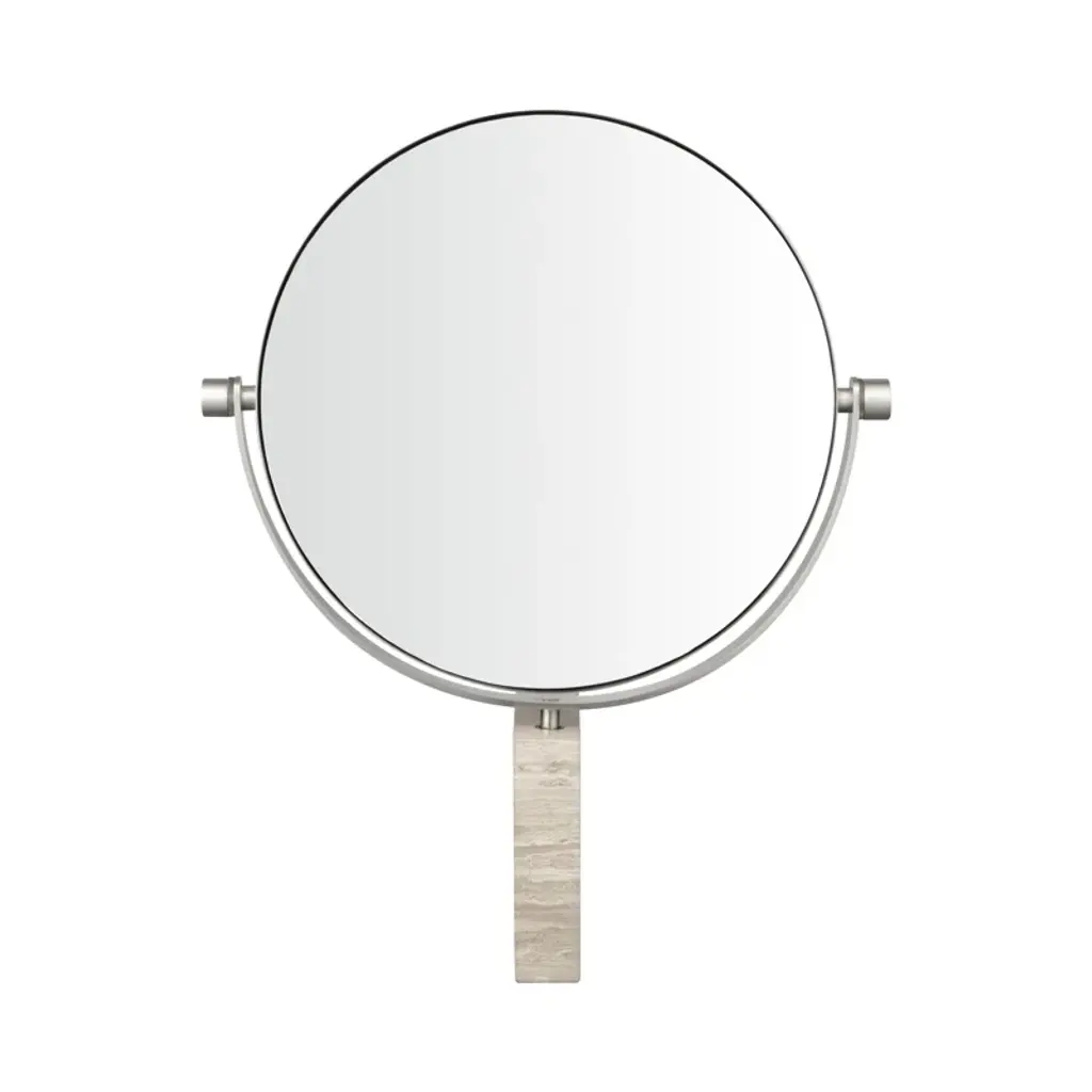 The simple design, classic finish and quality construction, along with the 3x magnifying mirror on one side make this piece pleasing in any bathroom.-Solid Brass Construction-Mirror rotates 360˚-3x magnification on one side-10½"�H, 7"� Dia