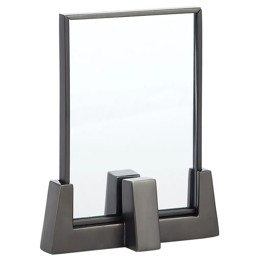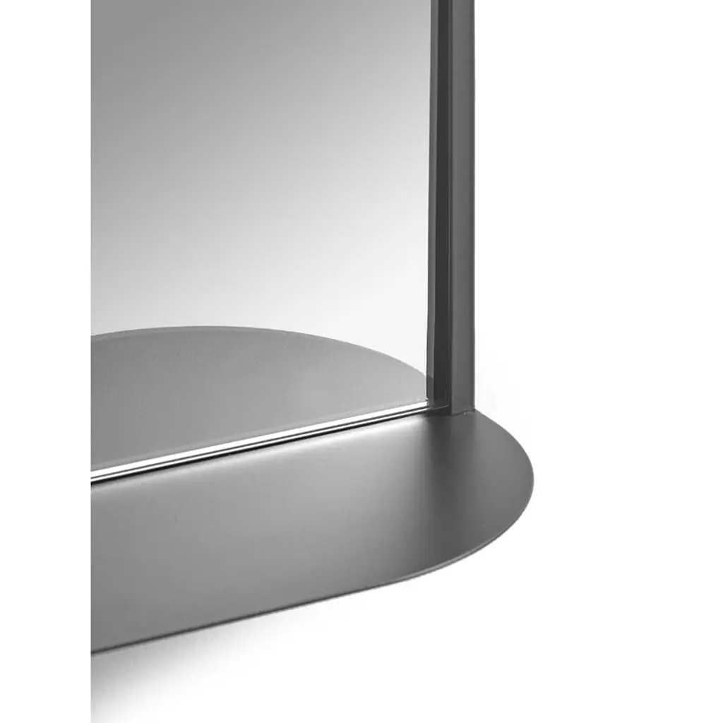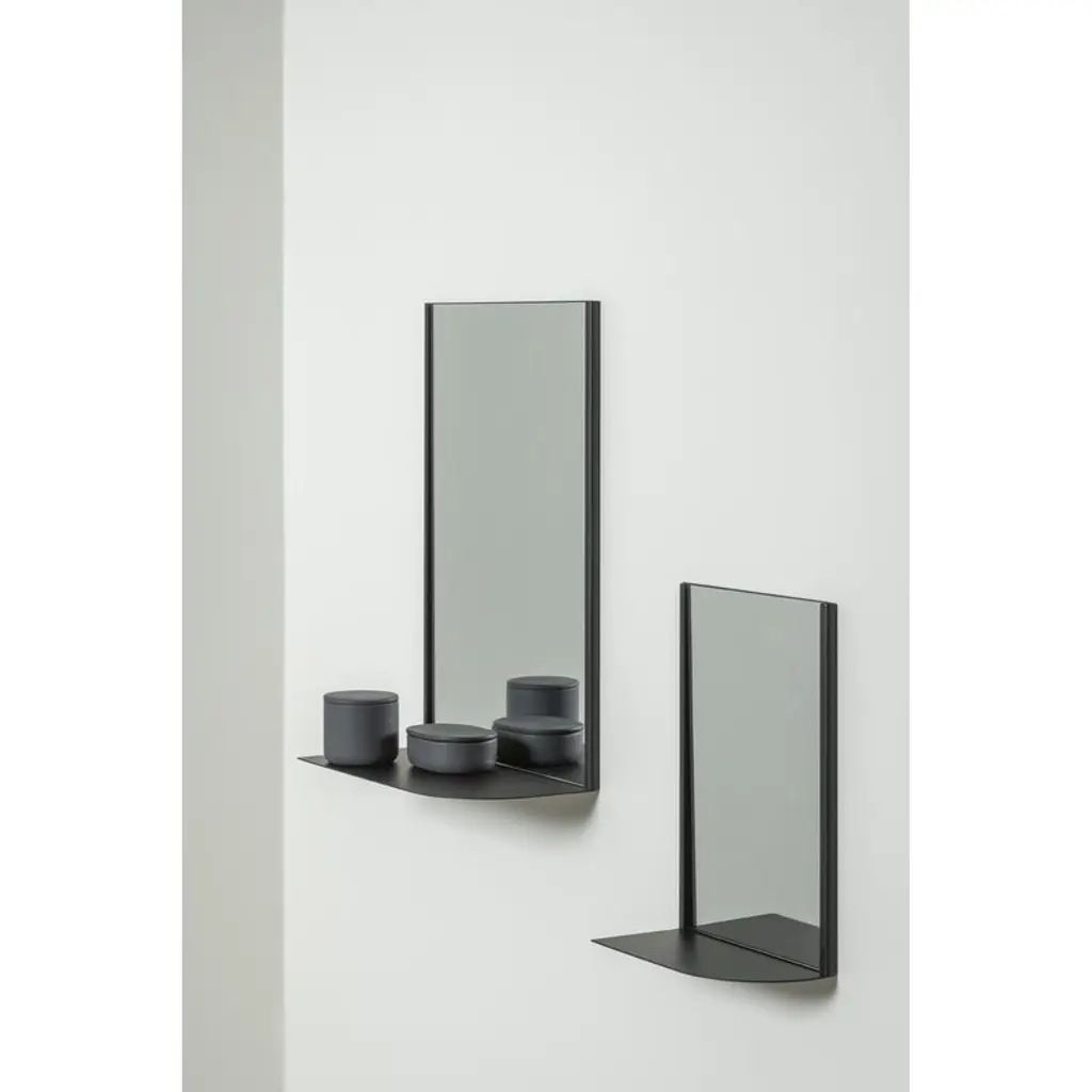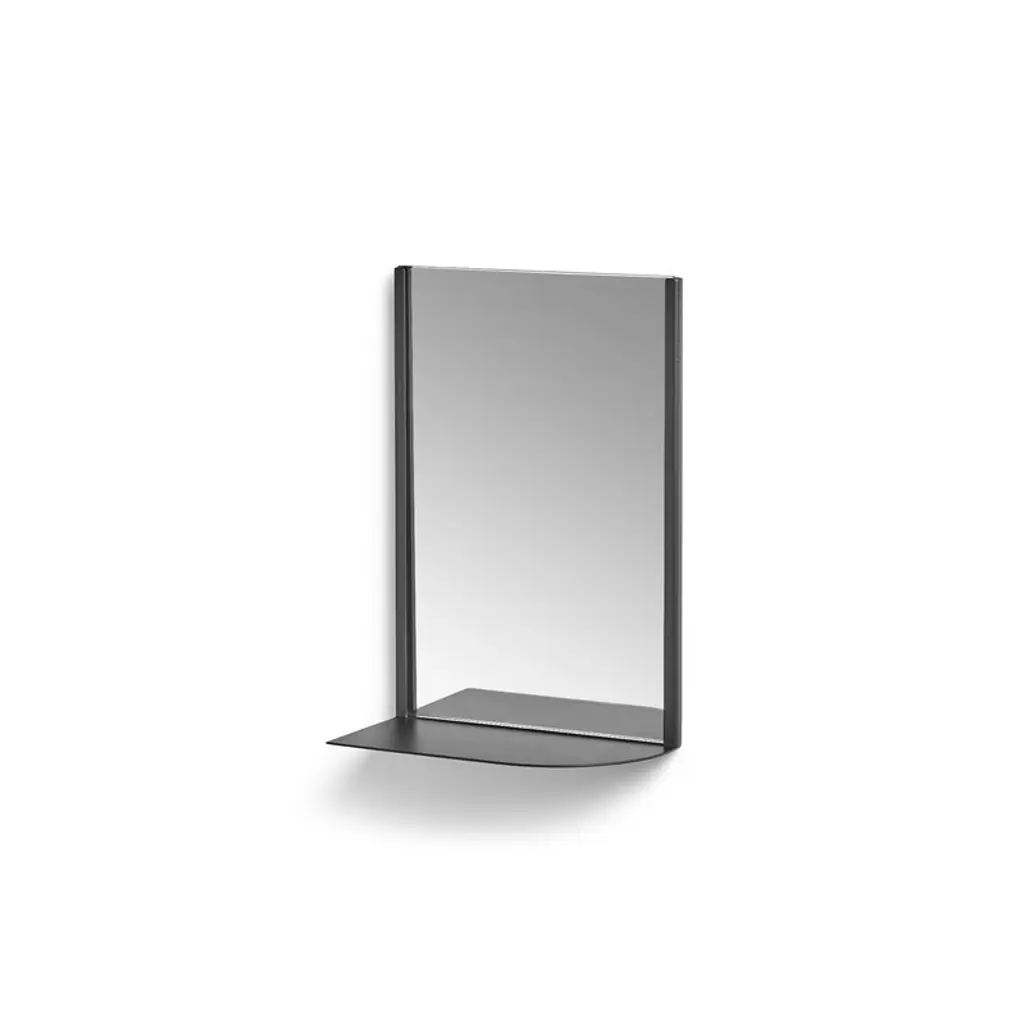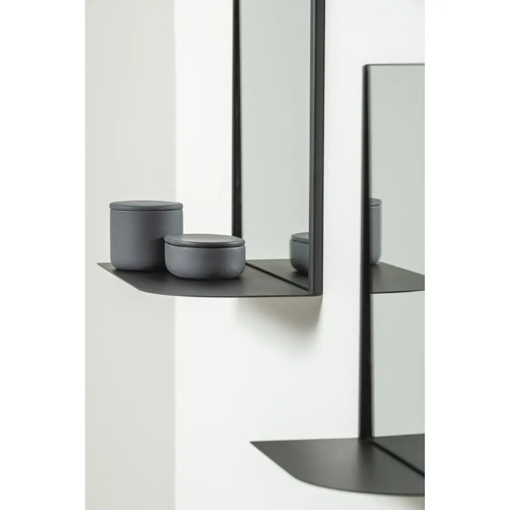 Serax's Cover Up mirror is a chic wall mirror with a sleek metal frame and a small shelf that provides a perfect spot for both cosmetics and decorative objects. Created by design studio Grint, the mirror boasts a sturdy wall mount and an asymmetrical shelf that gives the mirror an overall sculptural, geometric appearance. With its artistic flair, the Cover Up mirror seamlessly fits in above a bathroom sink or graces the wall of an entryway or dressing area.