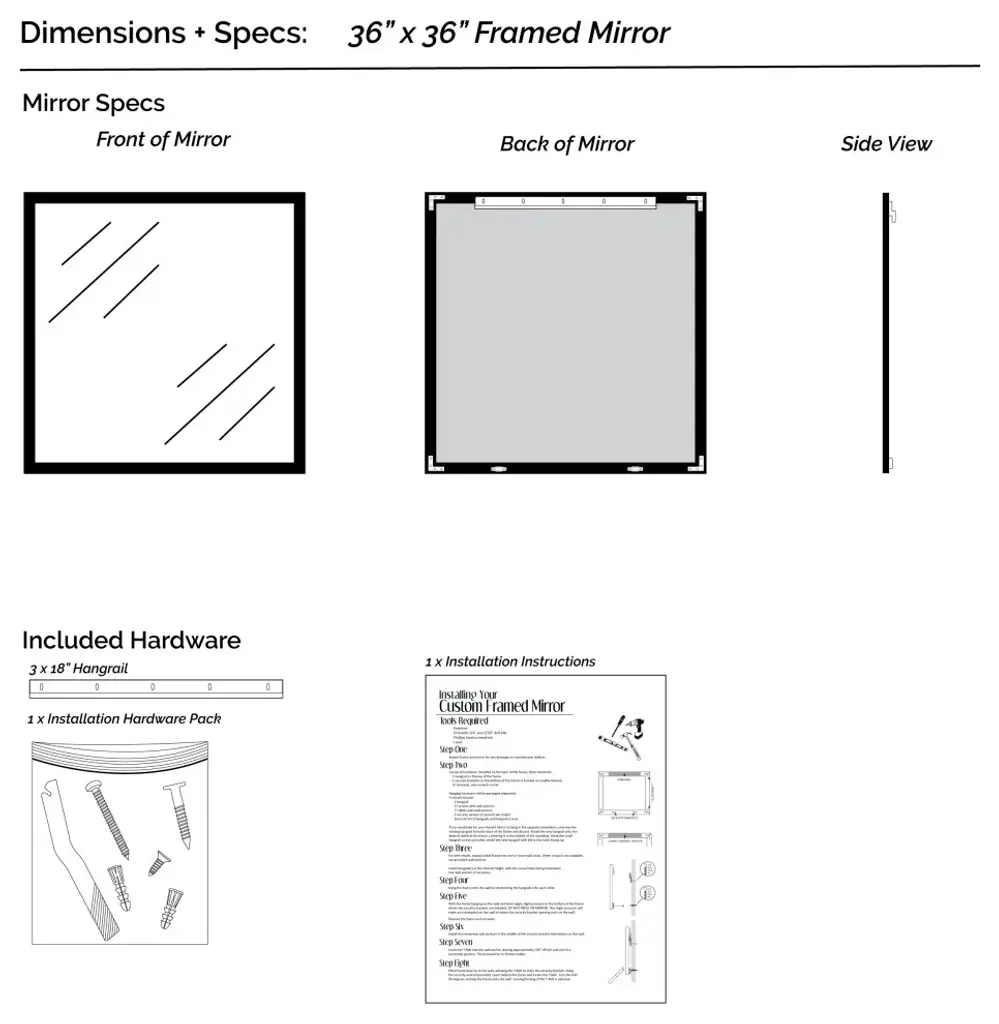 The metallic finish of the Crenshaw adds texture and light to your contemporary mirror. The raised outer edge gives this frame depth without being overbearing, and a narrow width offers a clean, modern look.Hangrail for installation will be applied on the width of the frame. All assembly hardware and instructions will be included. Additional hangrails are included if the opposite orientation is desired for installation. The dimensions displayed are the final outside dimensions of the frame, including the mirror. CATII safety backing applied on all mirrors. Approved for high-moisture areas such as bathrooms.