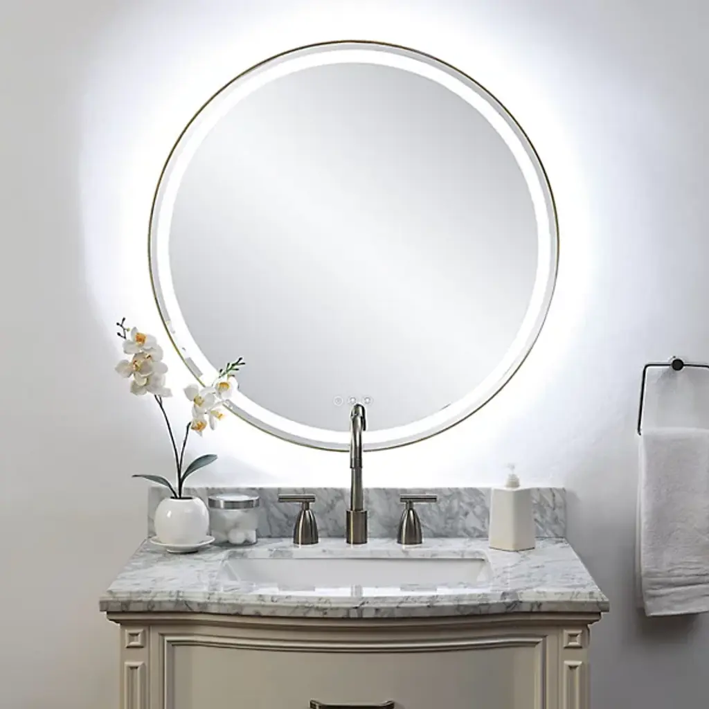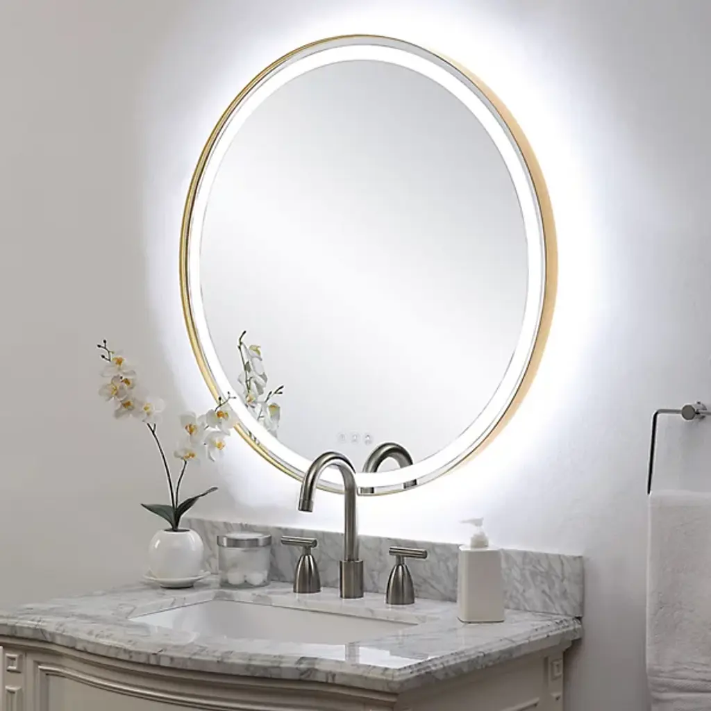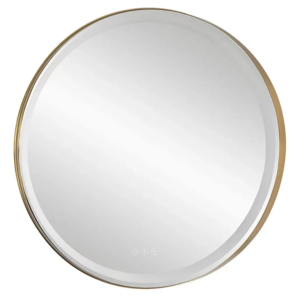 The Crofton LED Round Mirror from Uttermost is a blend of contemporary and ultra-modern aesthetics. This luxurious mirror is roundly shaped, bringing elegance to your living space. Illuminated by an integrated LED, the mirror offers functionality and style. It boasts an adjustable color temperature feature, controlled with a convenient touch and hold button directly on the mirror. Composed of high-quality materials, including stainless steel and metal, Crofton is built for lasting performance.