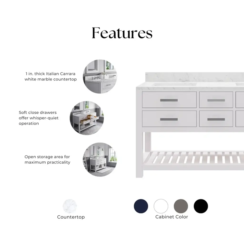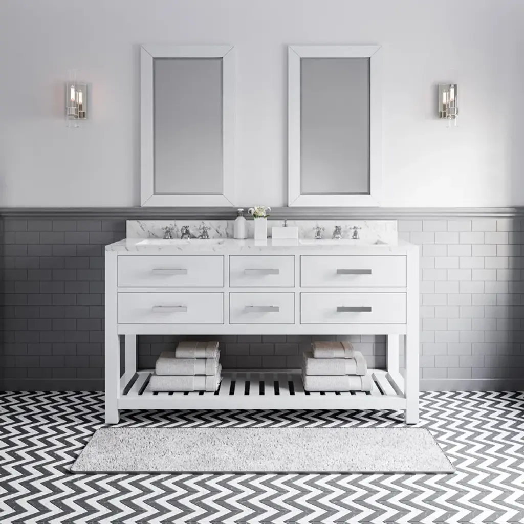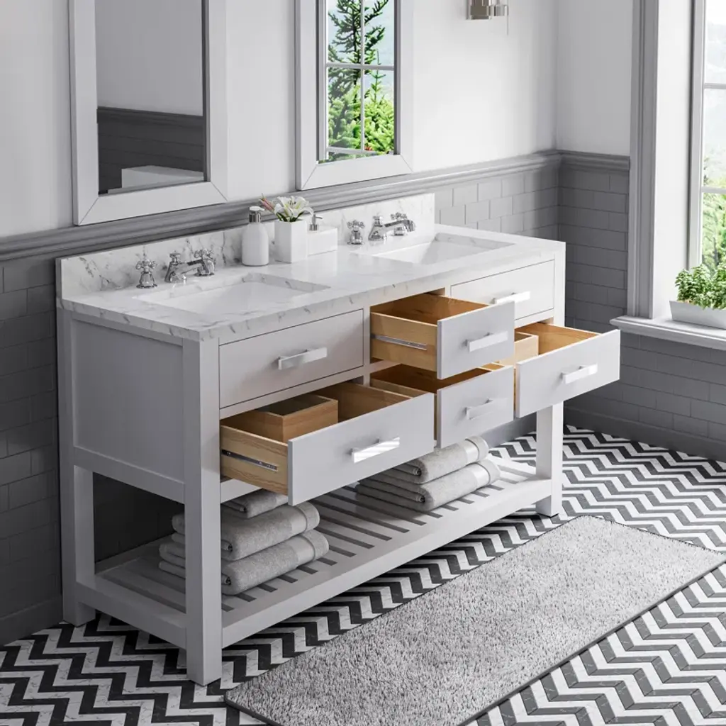 Cronin 60" Carrara White Marble Countertop Bath Vanity With Faucet And Mirror