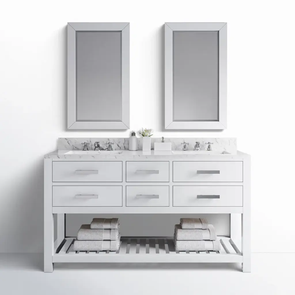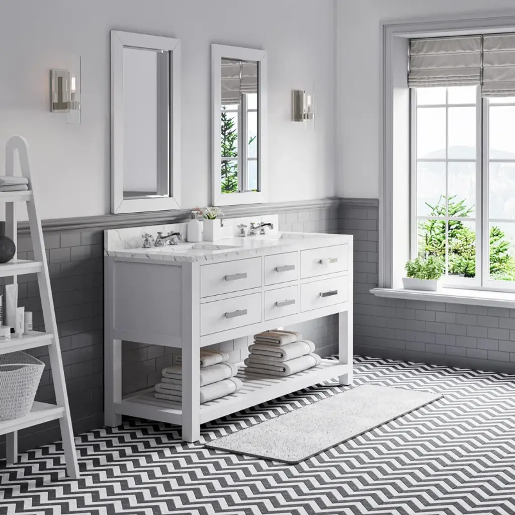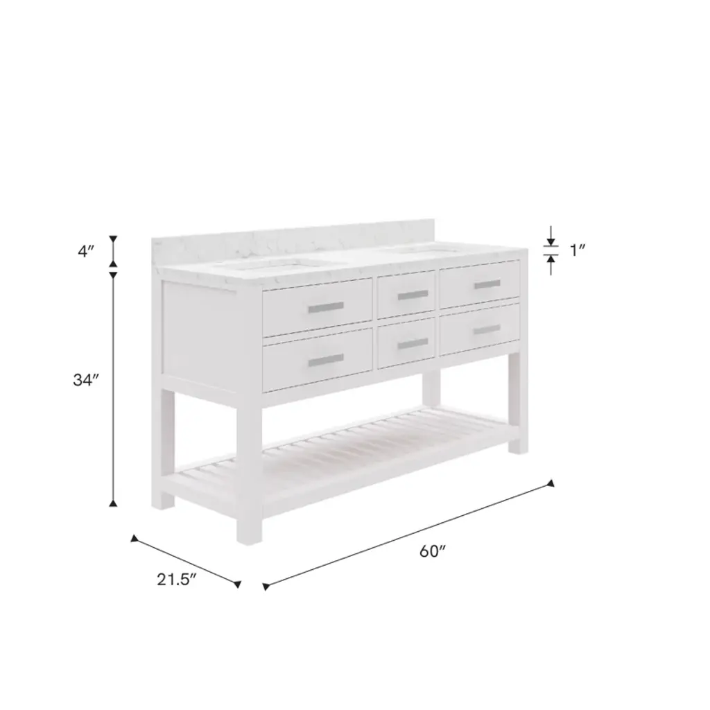 Cronin 60" Carrara White Marble Countertop Bath Vanity With Faucet And Mirror