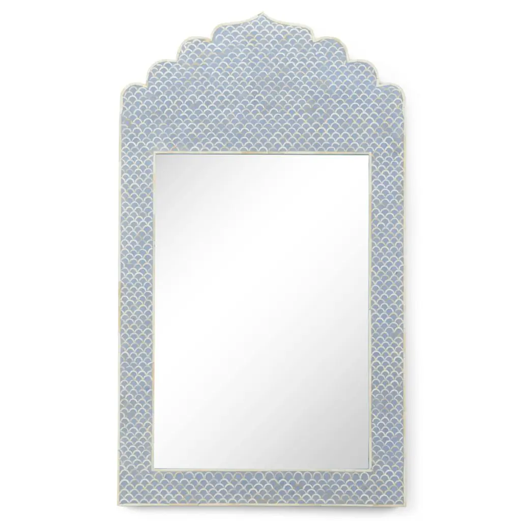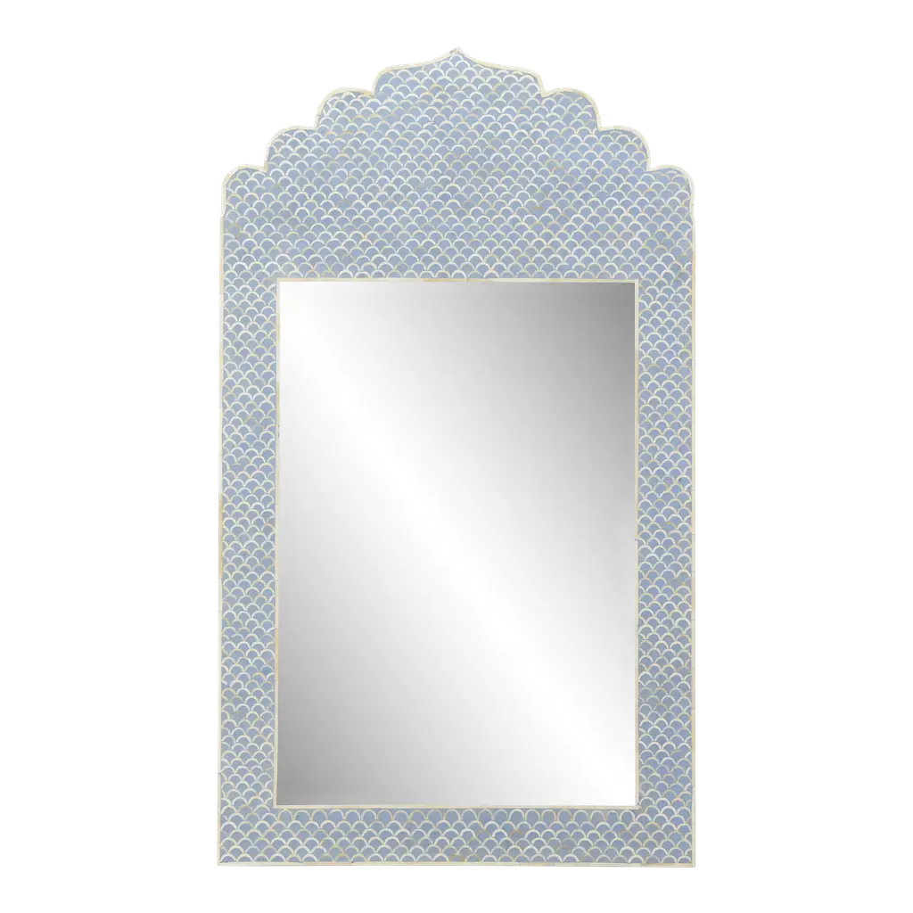 Bone. Cream. Blue And Cream Bone Inlayed Wood With Clear Plain Mirror. 27.75W X 1D X 47.5H