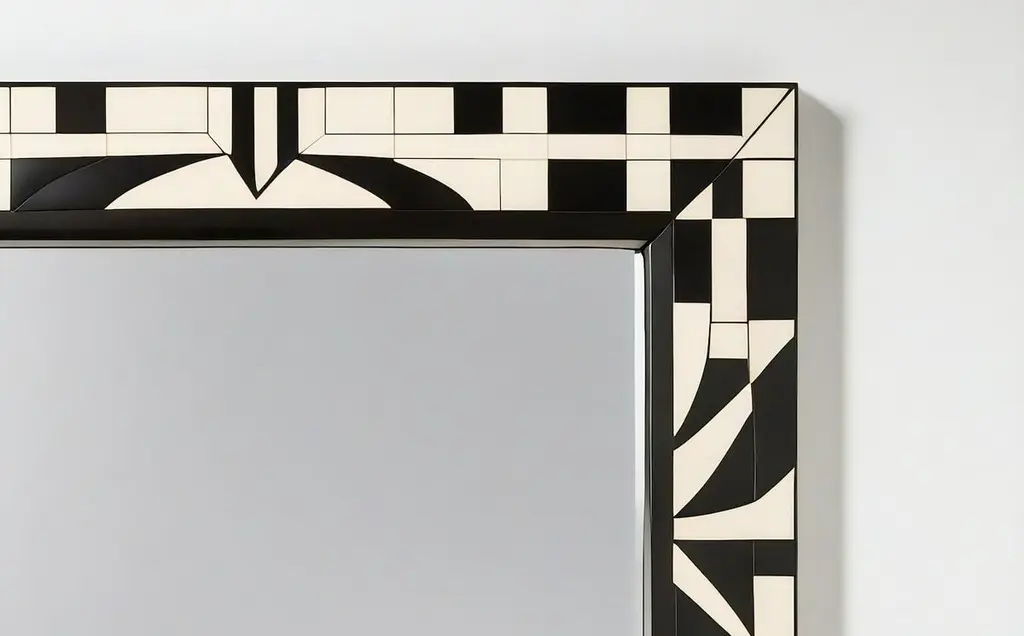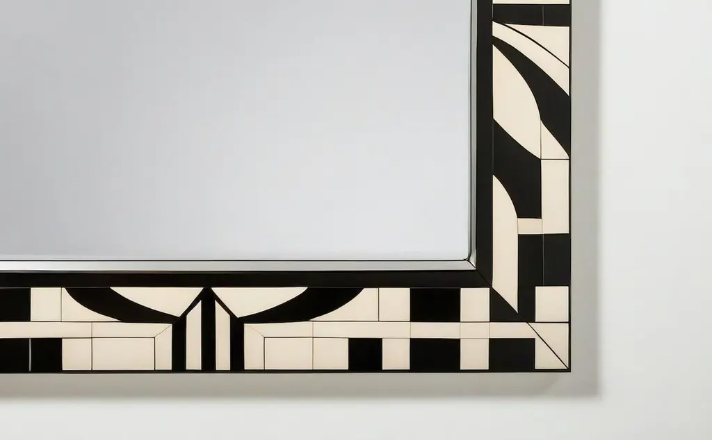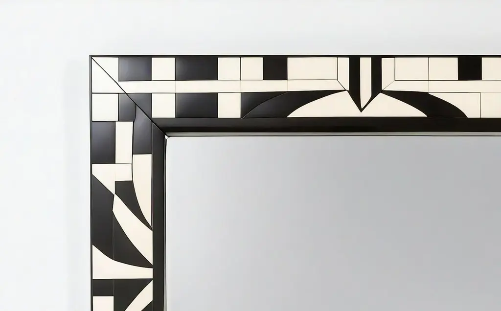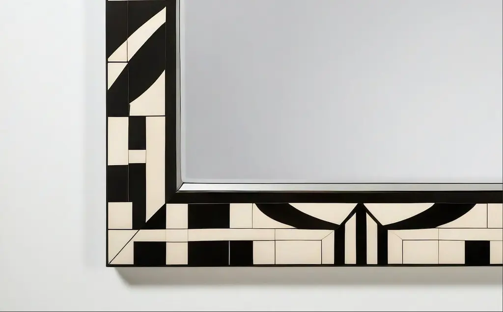 Cube : Black And White Wall Mirror Inspired By Cubism, Handcrafted By Artisanal