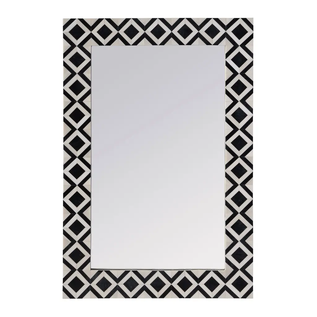 Elevate Your Space with Timeless EleganceTransform your interiors with the captivating beauty of our Cubism-Inspired Wall Mirror—an exquisite fusion of traditional craftsmanship and modern sophistication. Designed to be a statement piece, this mirror seamlessly combines intricate artistry with contemporary style, making it the perfect centerpiece for any home or workspace.Exquisite CraftsmanshipAdorned with mesmerising abstract and cube patterns, this mirror highlights the meticulous artistry of traditional bone inlay. Each detail pays homage to the centuries-old techniques of decorative design, reimagined in a sleek black resin finish. The result is a stunning piece that radiates elegance while retaining its timeless appeal.The Art of CreationHandcrafted with precision and care, every mirror is a true labor of love. It features over 200 individually cut and shaped bone pieces, expertly arranged into intricate patterns. Once assembled, each piece undergoes a careful coloring process, ensuring a flawless finish that enhances its beauty and durability.Crafted in India by Master ArtisansOur mirrors are handcrafted by skilled artisans who specialize in traditional techniques passed down through generations. Their dedication and expertise ensure that each mirror is not just a product but a masterpiece, reflecting India's rich heritage and craftsmanship.A Legacy of ExcellenceAt Artisanal, our mission is to revive and preserve India's rich artistic traditions by blending age-old techniques with contemporary design. For over six years, our team of artisans and designers has worked in-house to create high-quality, timeless pieces. Our mission is to keep these traditions alive, offering products that resonate with elegance, sophistication, and enduring value.Indulge in luxury and bring home the Cube Wall Mirror—a testament to art, culture, and craftsmanship that will be admired for years to come.