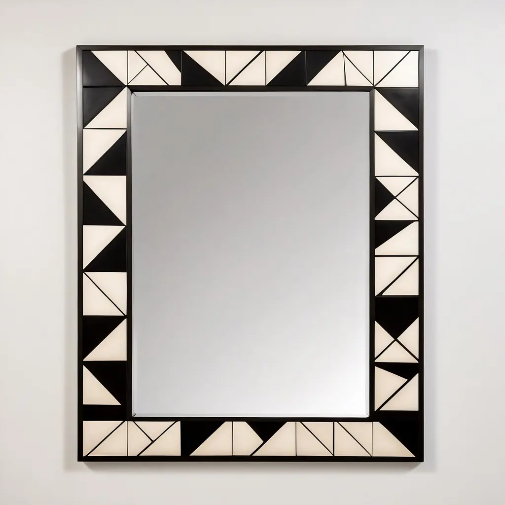Cube : Black And White Wall Mirror Inspired By Cubism, Handcrafted By Artisanal