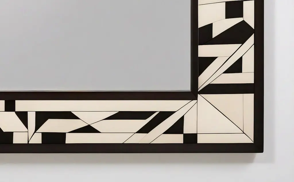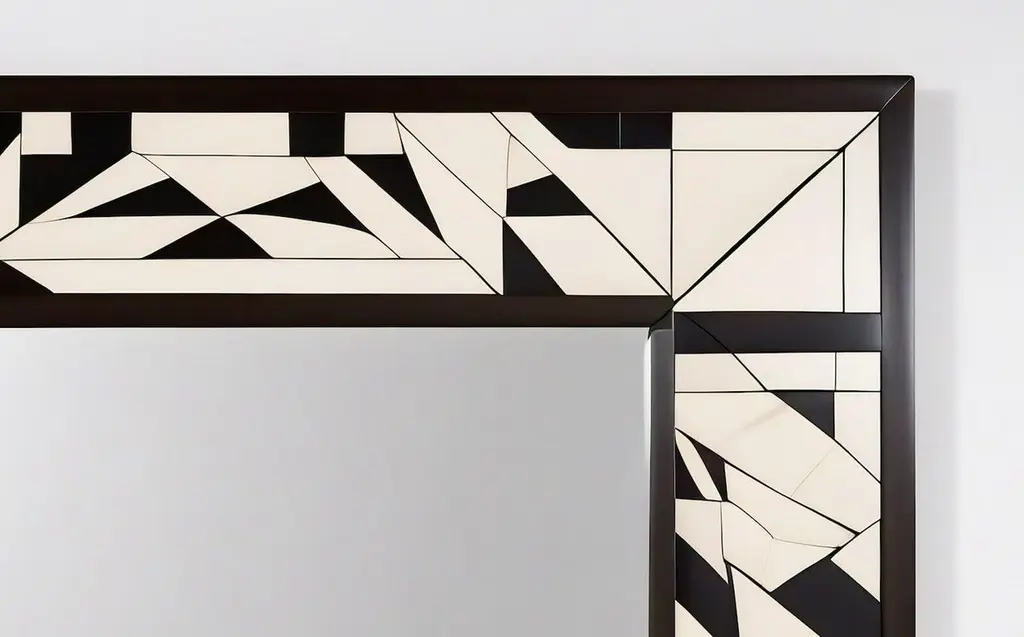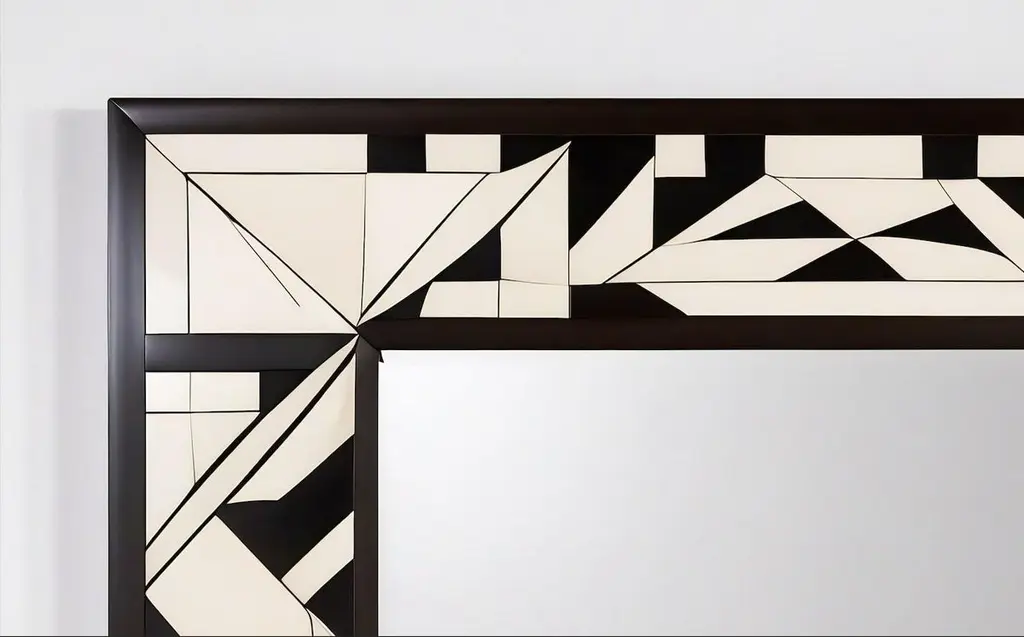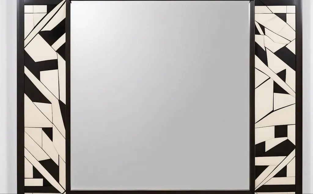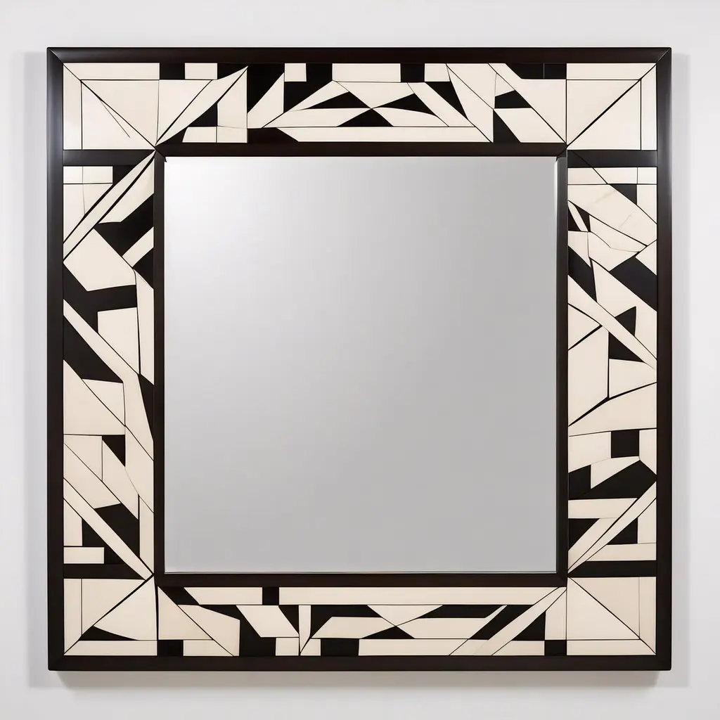 Cube : Black And White Wall Mirror Inspired By Cubism, Handcrafted By Artisanal