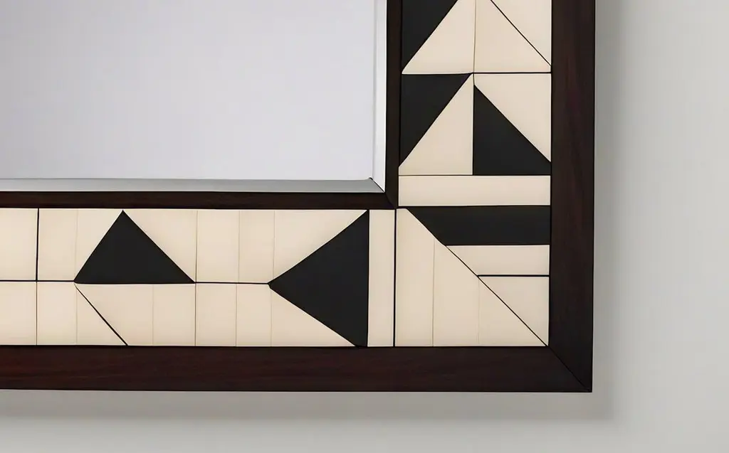 Elevate Your Space with Timeless EleganceTransform your interiors with the captivating beauty of our Cubism-Inspired Wall Mirror—an exquisite fusion of traditional craftsmanship and modern sophistication. Designed to be a statement piece, this mirror seamlessly combines intricate artistry with contemporary style, making it the perfect centerpiece for any home or workspace.Exquisite CraftsmanshipAdorned with mesmerising abstract and cube patterns, this mirror highlights the meticulous artistry of traditional bone inlay. Each detail pays homage to the centuries-old techniques of decorative design, reimagined in a sleek black resin finish. The result is a stunning piece that radiates elegance while retaining its timeless appeal.The Art of CreationHandcrafted with precision and care, every mirror is a true labor of love. It features over 200 individually cut and shaped bone pieces, expertly arranged into intricate patterns. Once assembled, each piece undergoes a careful coloring process, ensuring a flawless finish that enhances its beauty and durability.Crafted in India by Master ArtisansOur mirrors are handcrafted by skilled artisans who specialize in traditional techniques passed down through generations. Their dedication and expertise ensure that each mirror is not just a product but a masterpiece, reflecting India's rich heritage and craftsmanship.A Legacy of ExcellenceAt Artisanal, our mission is to revive and preserve India's rich artistic traditions by blending age-old techniques with contemporary design. For over six years, our team of artisans and designers has worked in-house to create high-quality, timeless pieces. Our mission is to keep these traditions alive, offering products that resonate with elegance, sophistication, and enduring value.Indulge in luxury and bring home the Cube Wall Mirror—a testament to art, culture, and craftsmanship that will be admired for years to come.