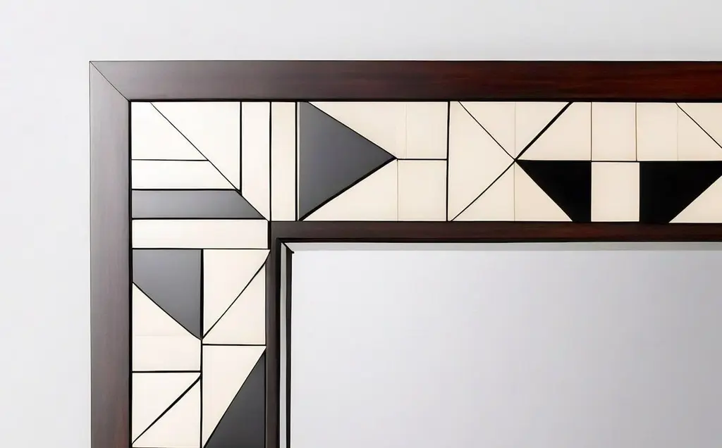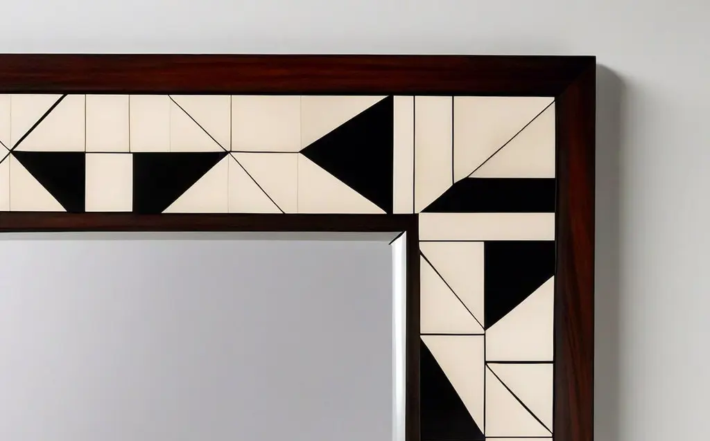 Cube : Black And White Wall Mirror Inspired By Cubism, Handcrafted By Artisanal