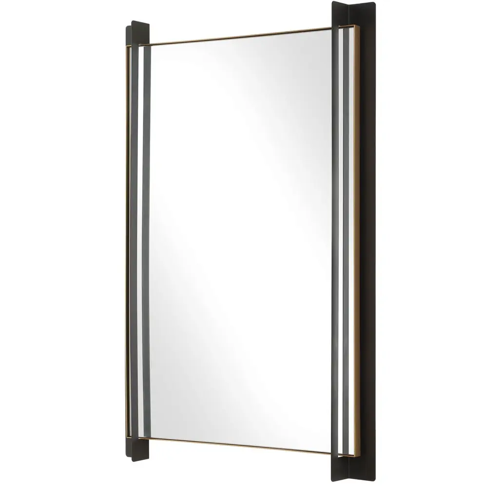 This Mirror Blends Contemporary Styling With Industrial Elements, Featuring A Parallel Floating Matte Black Iron Frame With Strong Corner Details, Complemented By A Thin Gold Leaf Inner Liner.